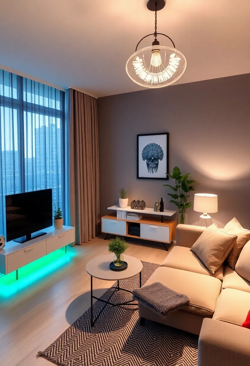 - <strong.Colorful pendant lights: Hang an array of eclectic pendant lights over your coffee table to create visual interest.