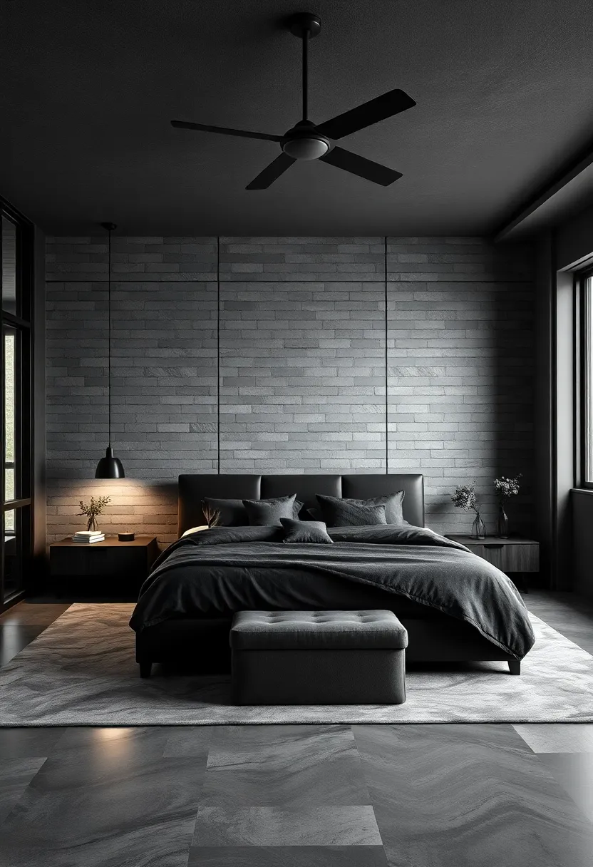 Focusing on color variety while maintaining a monochromatic scheme can enhance the overall design.Utilize shades of grey and black, while introducing textural variations such as matte, glossy, and brushed finishes. Incorporate elements like a slate stone nightstand next to a polished steel lamp to emphasize this effect. For added visual intrigue, consider a feature wall adorned with timber slats or a raw concrete finish. By artfully layering these components, you create a sense of richness in the room that feels both luxurious and grounded, making the space not just visually appealing but also profoundly inviting.