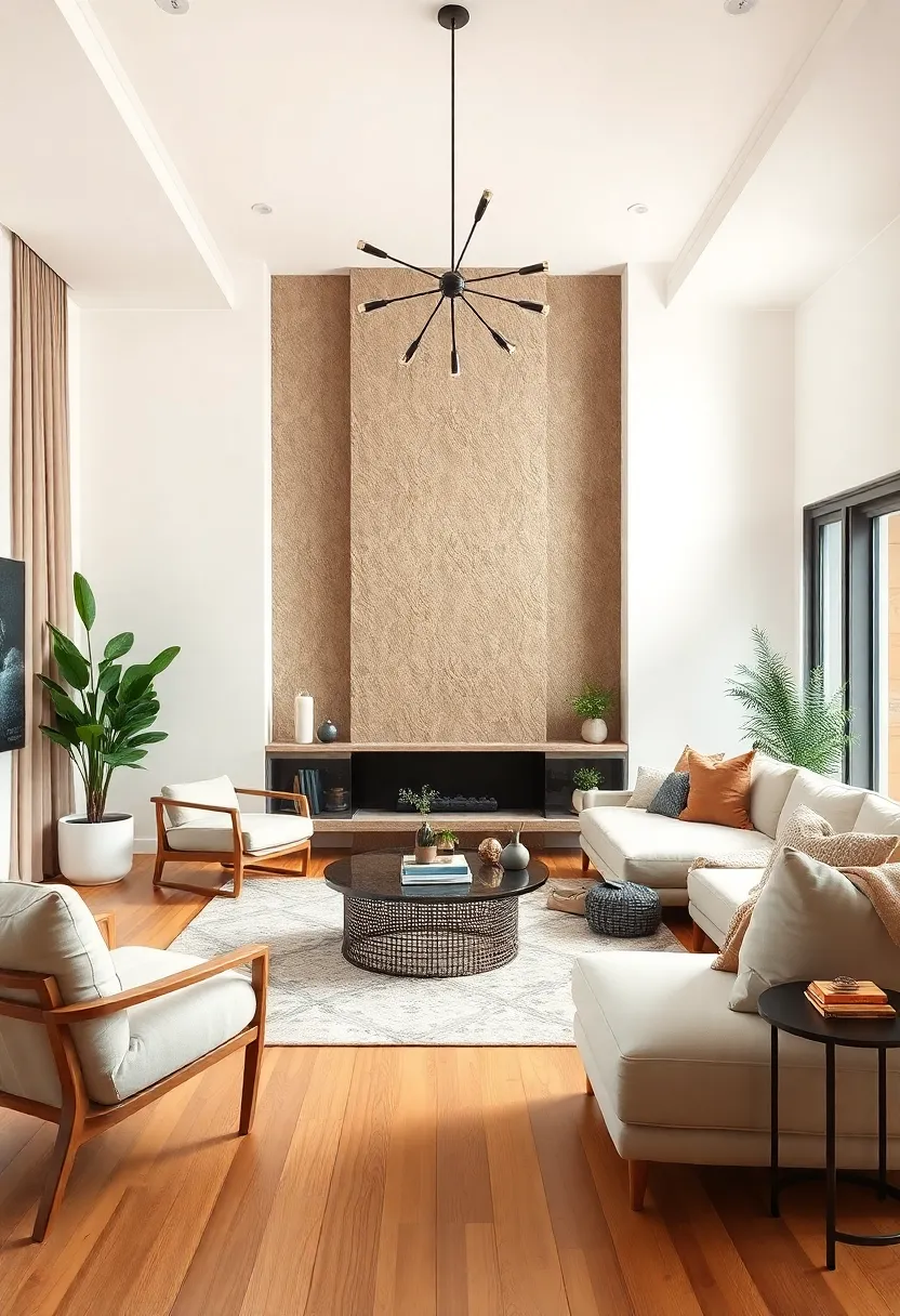 Utilizing reflective surfaces can also promote a warm ambiance, making the living room feel both spacious and grounded. Mirrors strategically placed can bounce light around, enhancing the natural glow and adding depth to earthy surroundings.