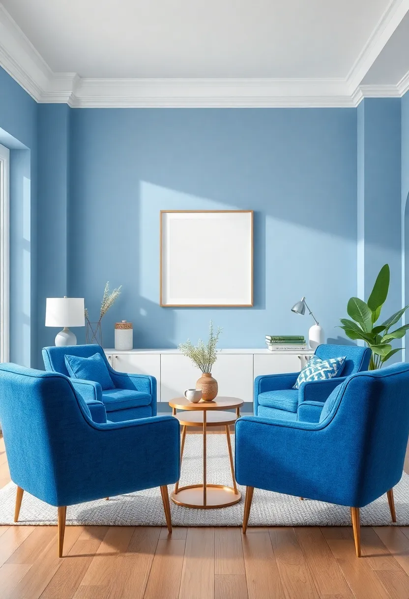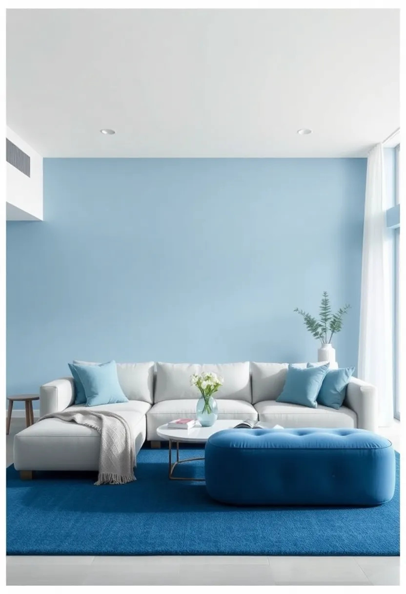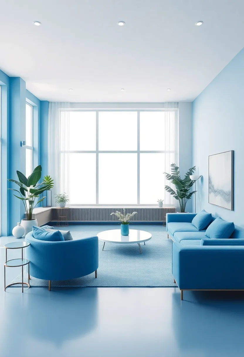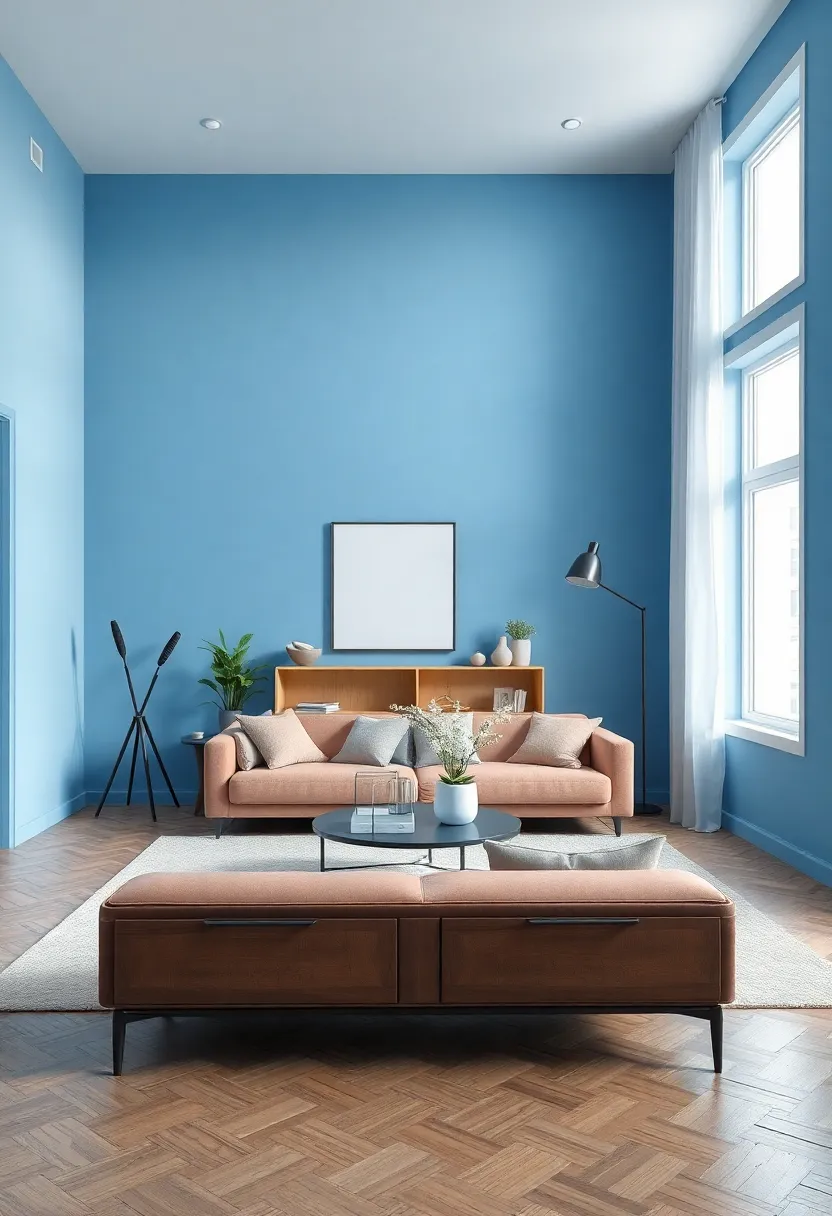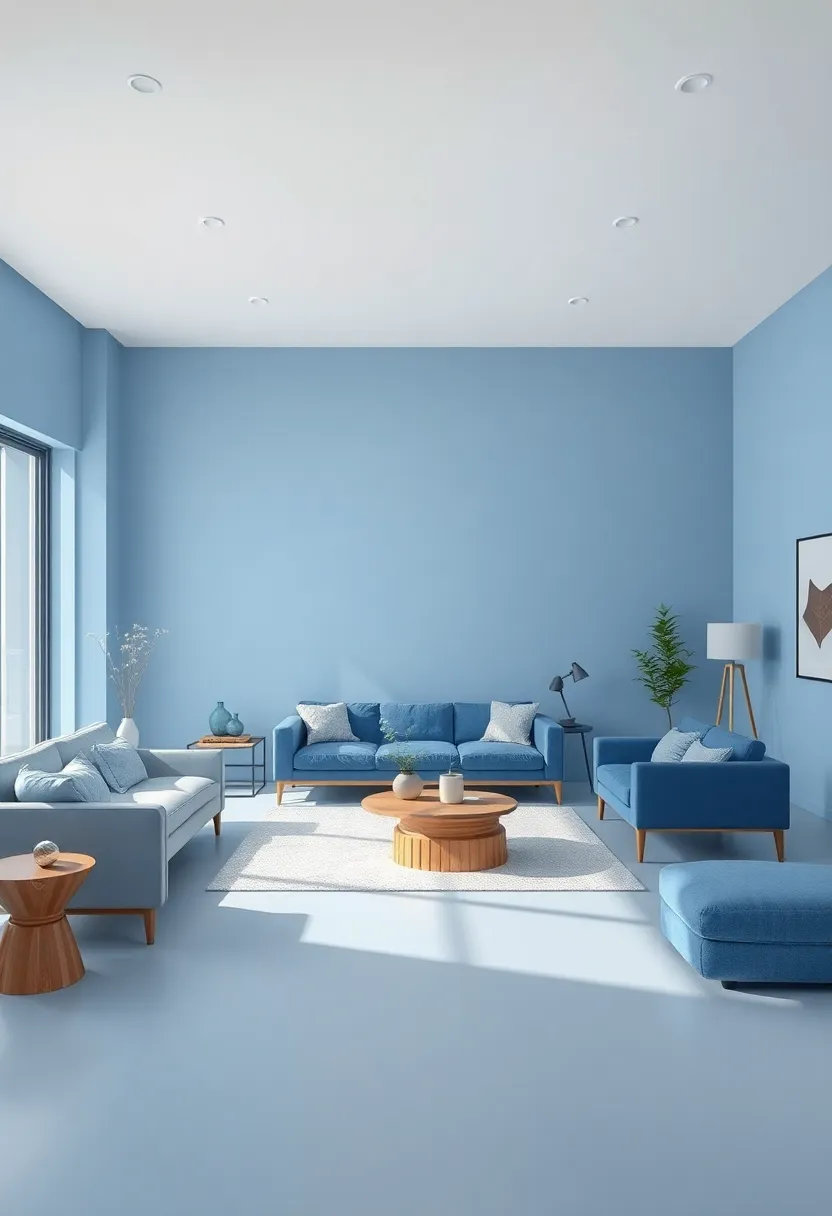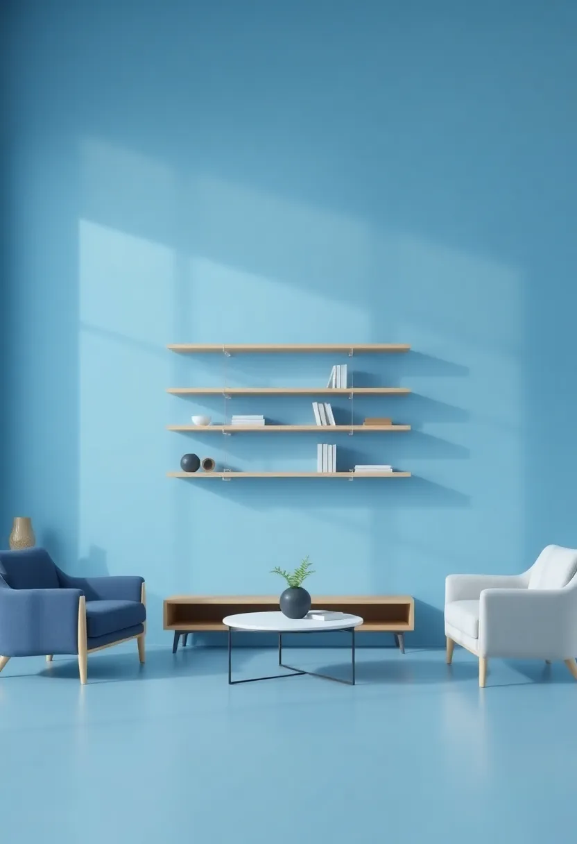To enhance the calming effect, pair the blue tones with natural materials and minimalistic decor. Simple furniture designs, such as a sleek sofa or a minimalist coffee table, can complement your color choice without overwhelming the space. Consider adding a few accent pieces,like: