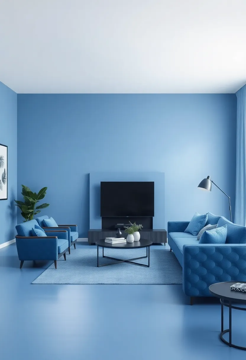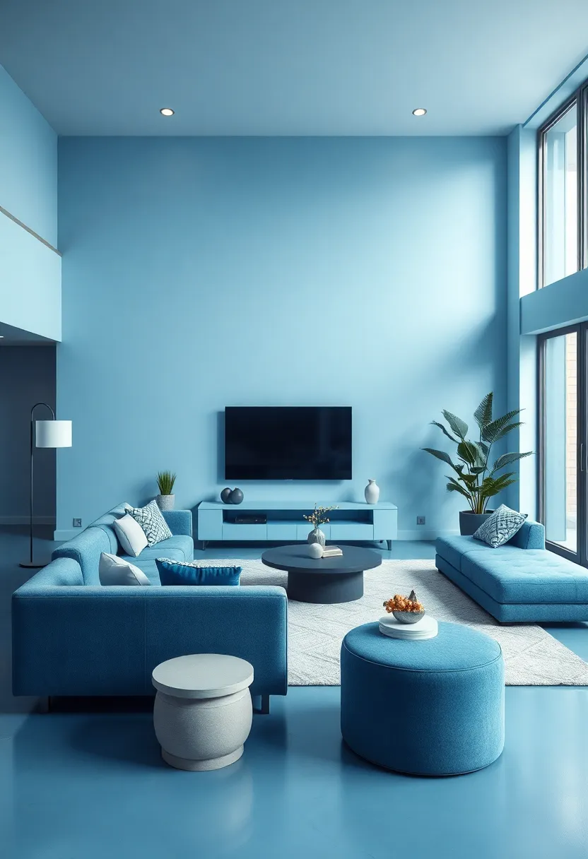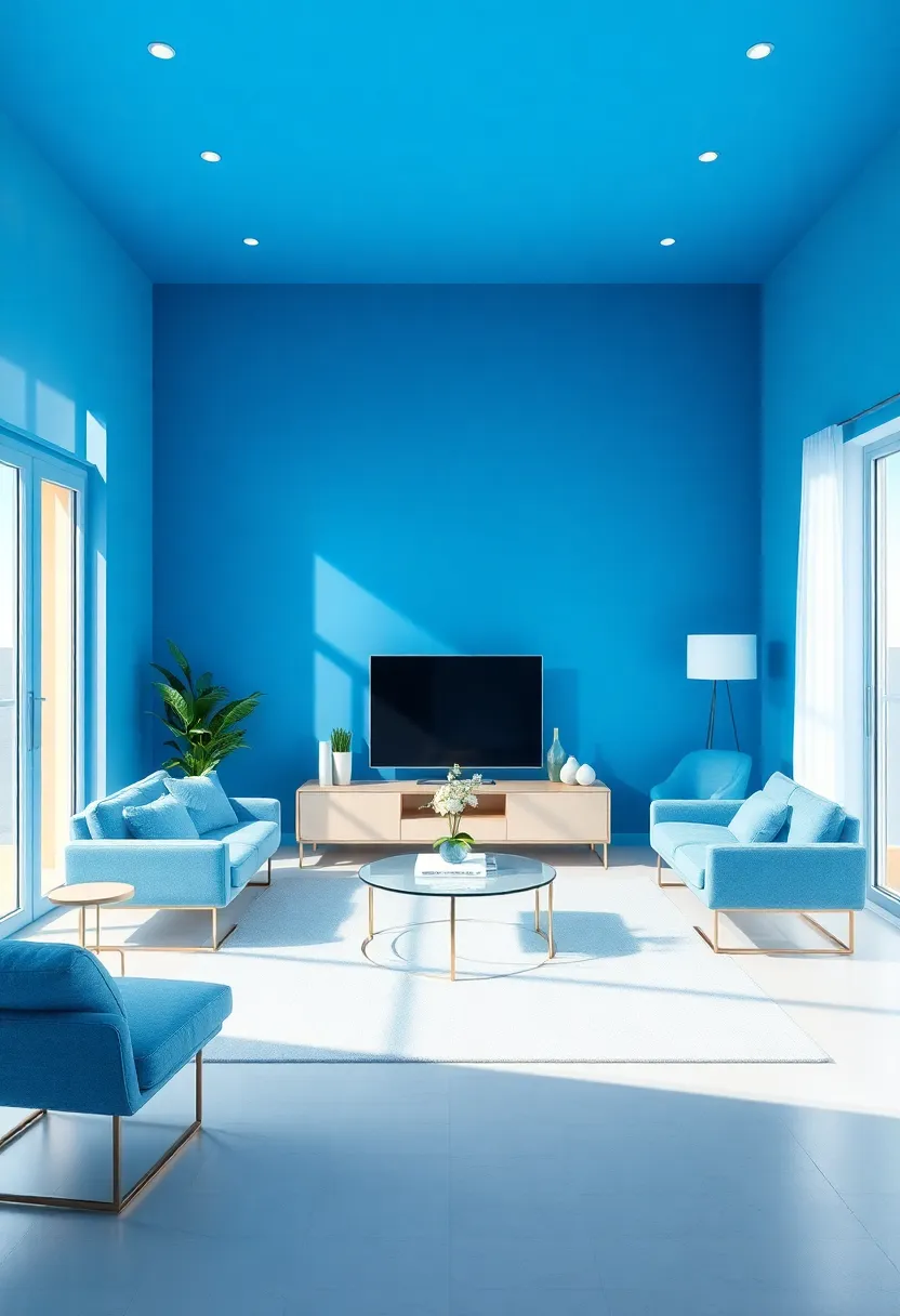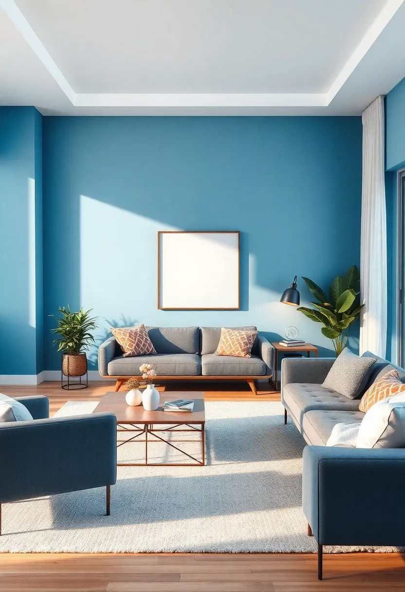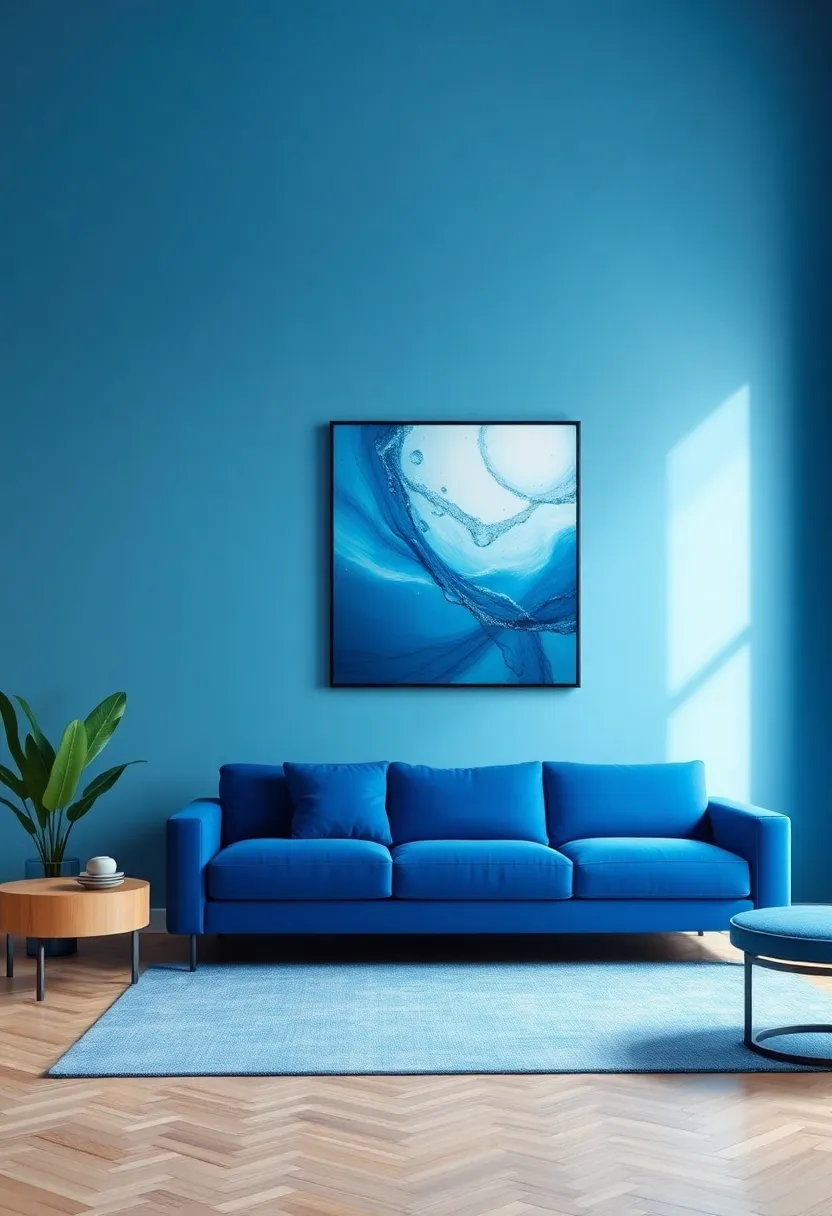 To enhance the calming effect, pair the blue tones with natural materials and minimalistic decor. Simple furniture designs, such as a sleek sofa or a minimalist coffee table, can complement your color choice without overwhelming the space. Consider adding a few accent pieces,like: