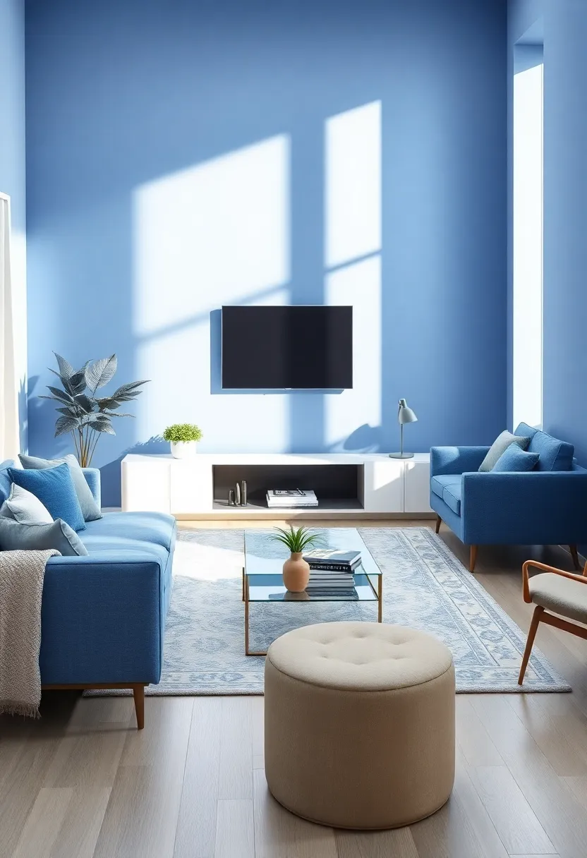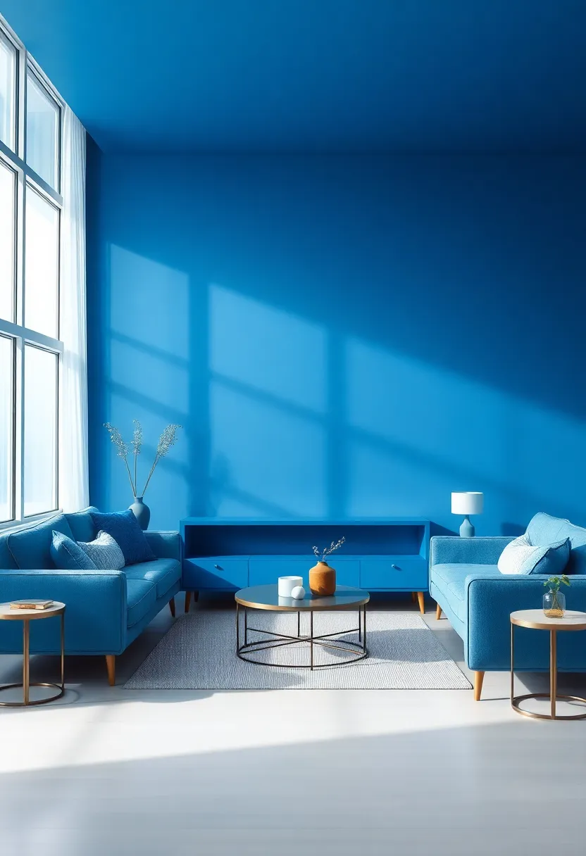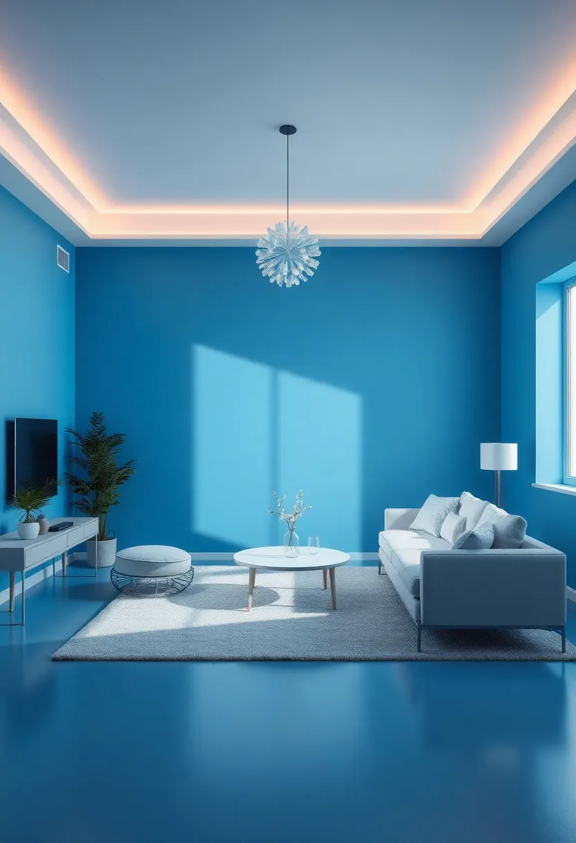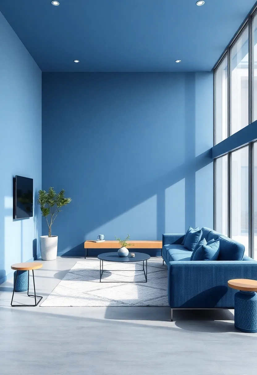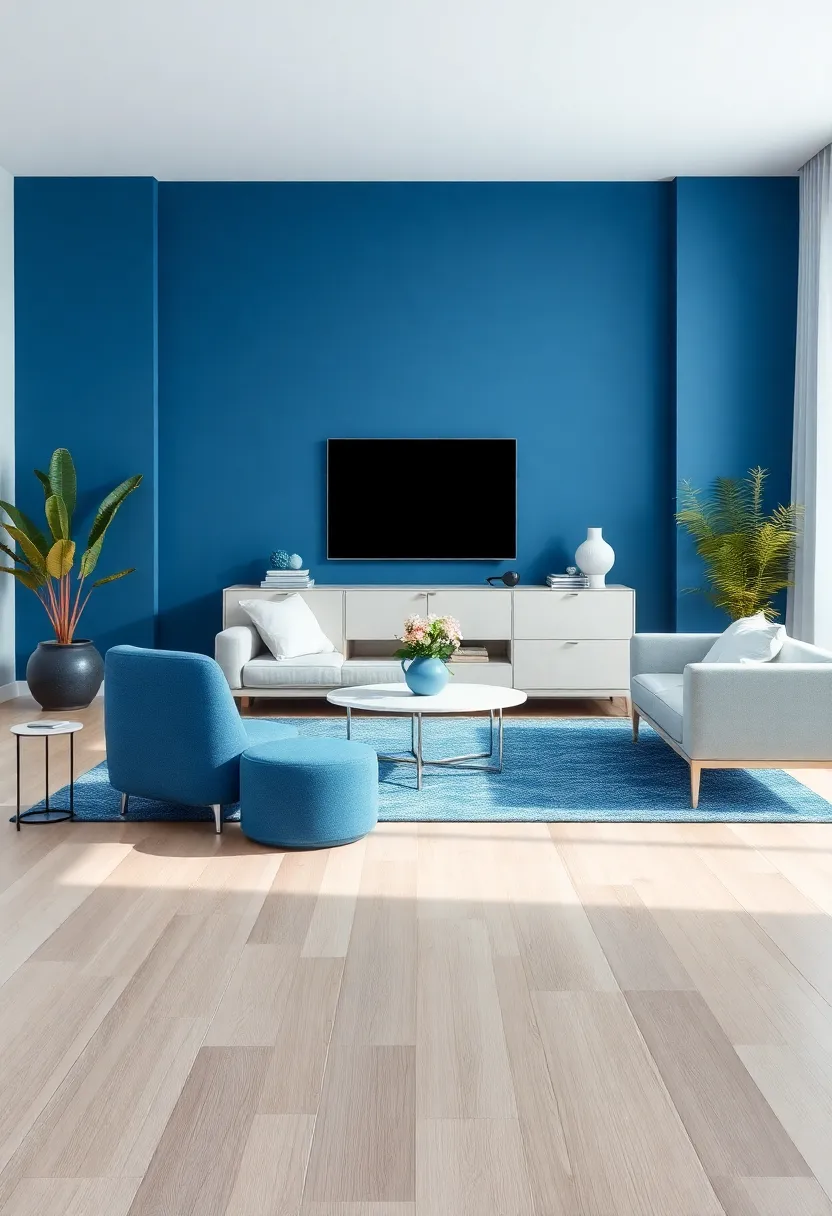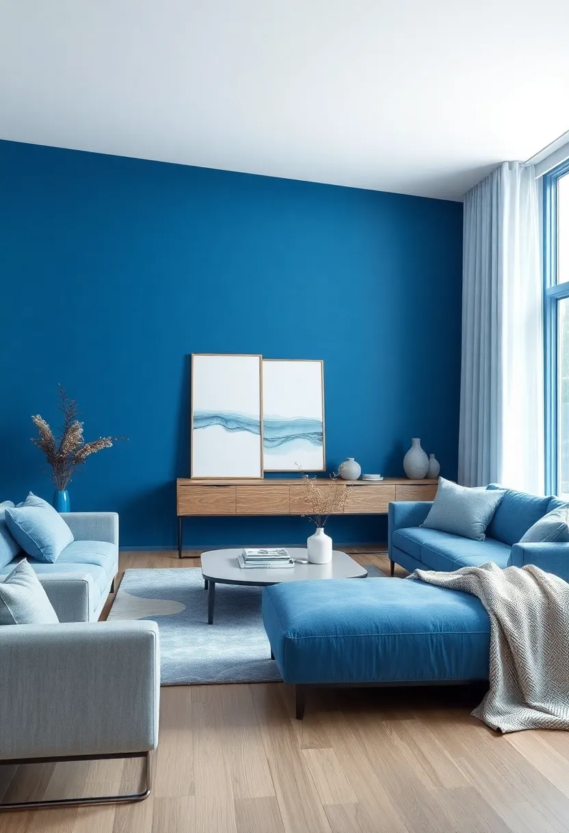 To enhance the calming effect, pair the blue tones with natural materials and minimalistic decor. Simple furniture designs, such as a sleek sofa or a minimalist coffee table, can complement your color choice without overwhelming the space. Consider adding a few accent pieces,like: