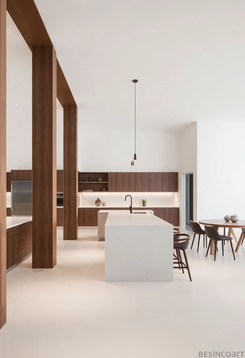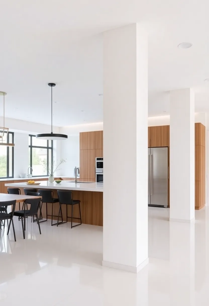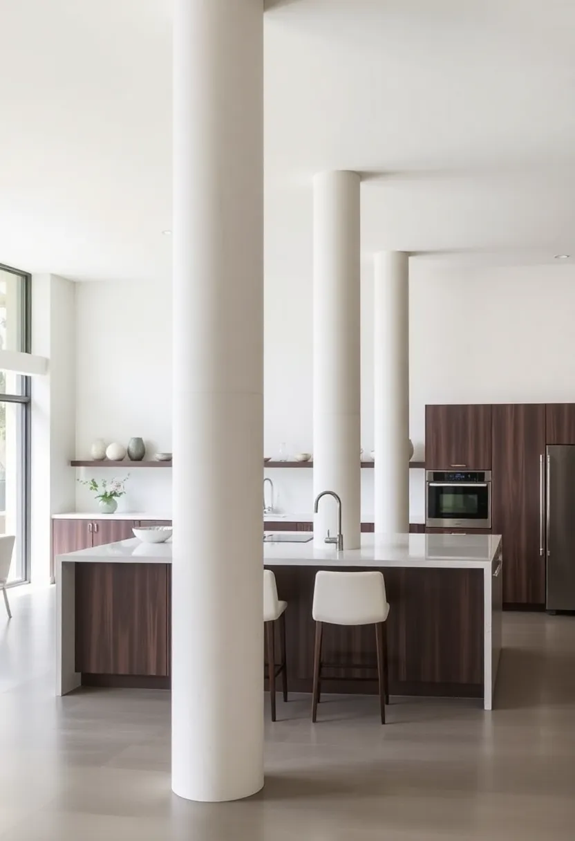 Moreover,elegant columns can serve as stunning architectural features that frame your kitchen and define spaces without creating division. These elements can highlight transitional zones while providing structural support, maintaining a sense of openness. For example, consider incorporating: