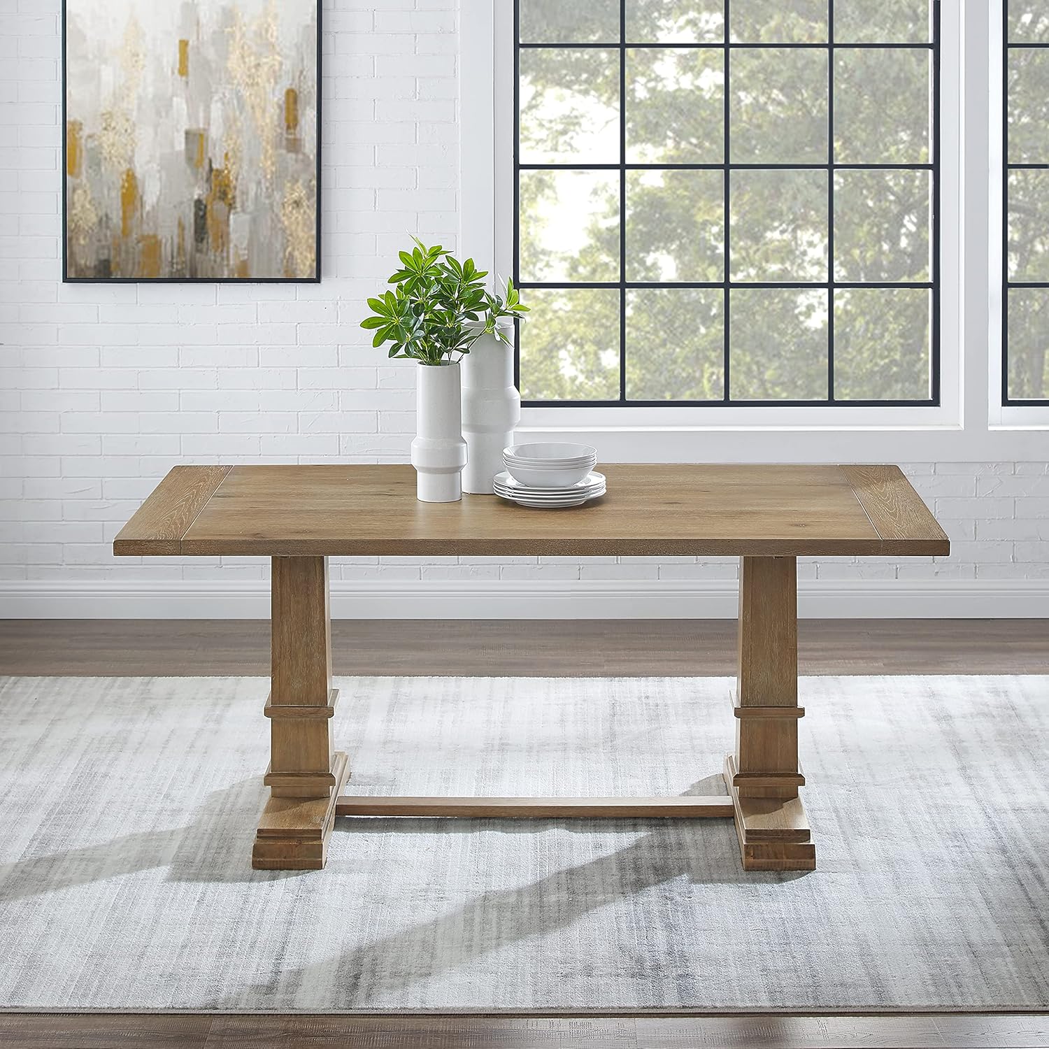 Seating comfort is enhanced by the open spacing created by the trestle base, allowing plenty of room for dining chairs of various styles. Although chairs are sold separately, the table accommodates a mix-and-match approach that fits different decor preferences, from traditional to French country or rustic. Adjustable levelers on the base keep the table perfectly stable on uneven floors, which helps maintain a agreeable and even dining experience throughout every meal.