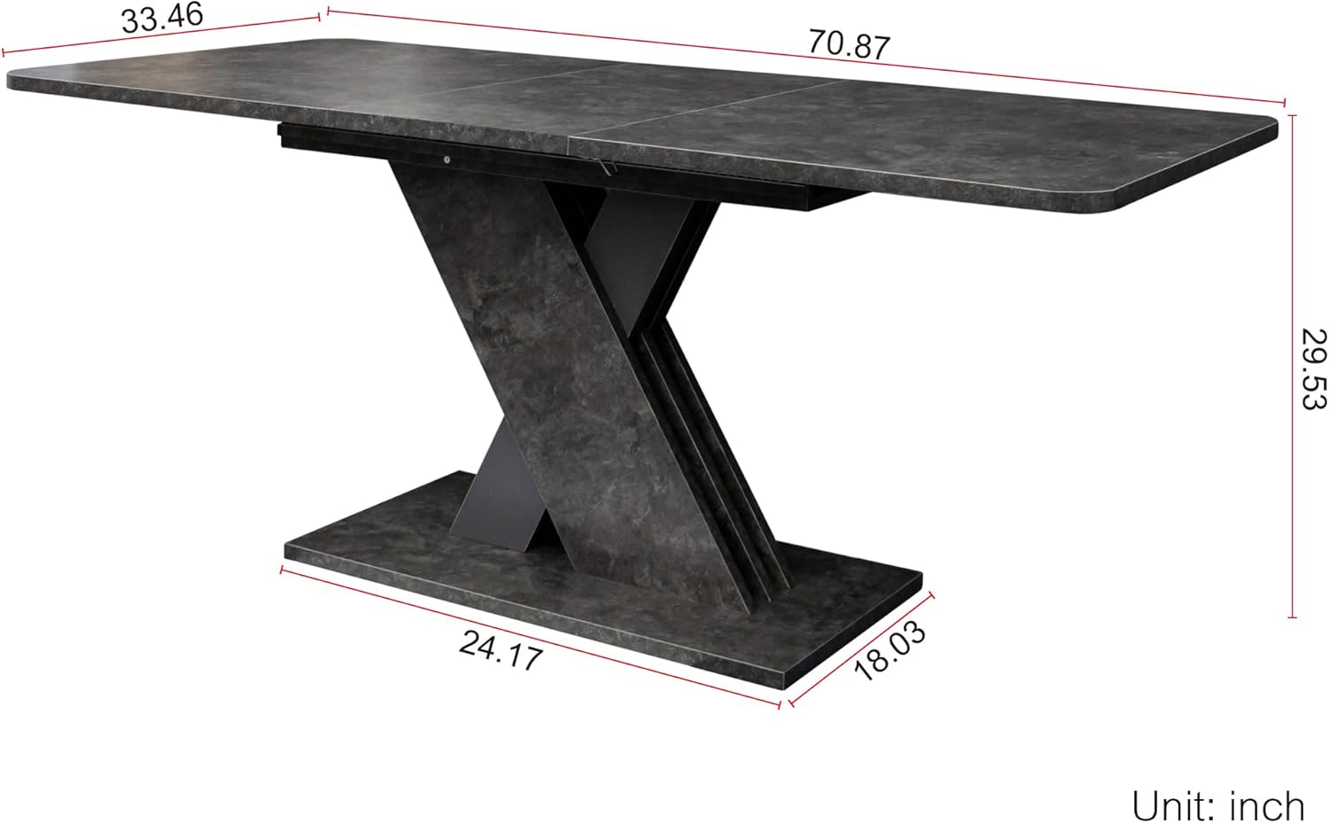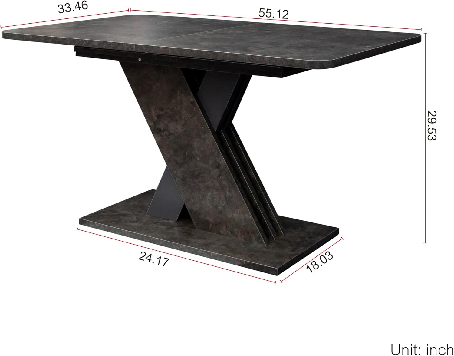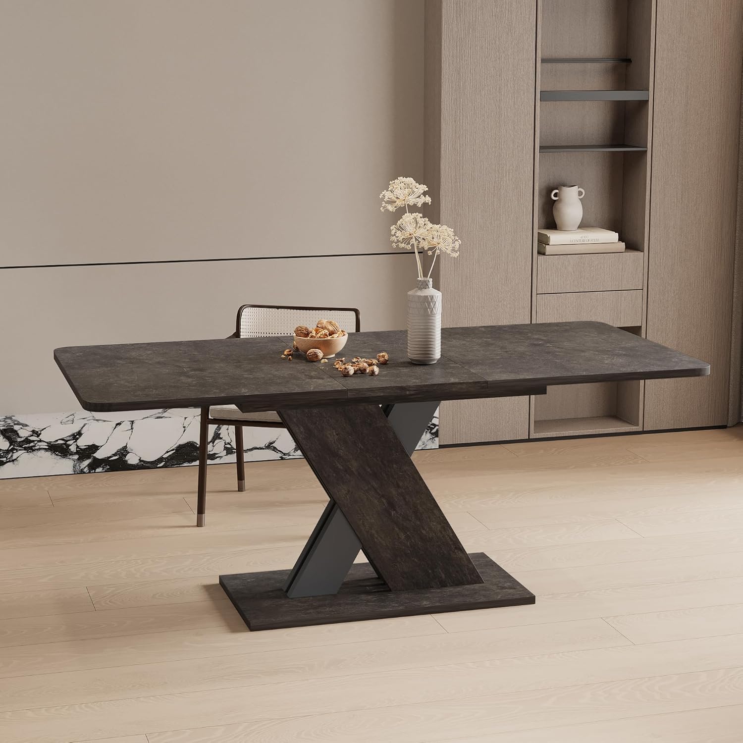 Whether placed in a bustling kitchen or a professional conference room, the table’s adaptable design truly shines. Its extendable feature allows it to comfortably seat 4 to 8 people, making it ideal for intimate family dinners or larger group meetings.The faux marble wood-grain finish adds an elegant touch without overpowering the surrounding décor, effortlessly complementing minimalist, modern, or traditional interiors alike. We especially appreciate how the striking X-shaped pedestal base adds a bold geometric accent while maintaining ample legroom, ensuring both style and comfort in every setting.