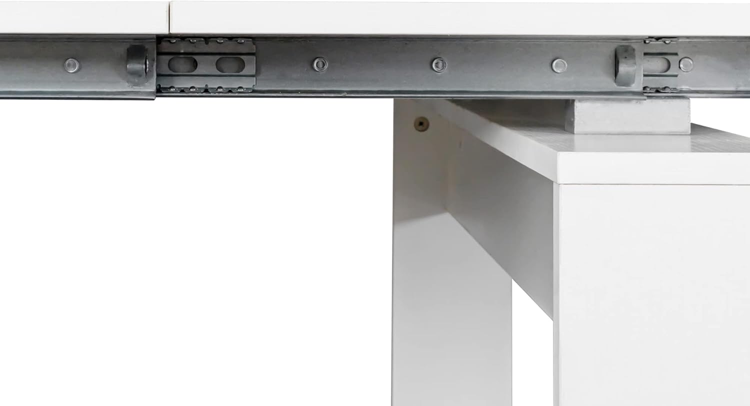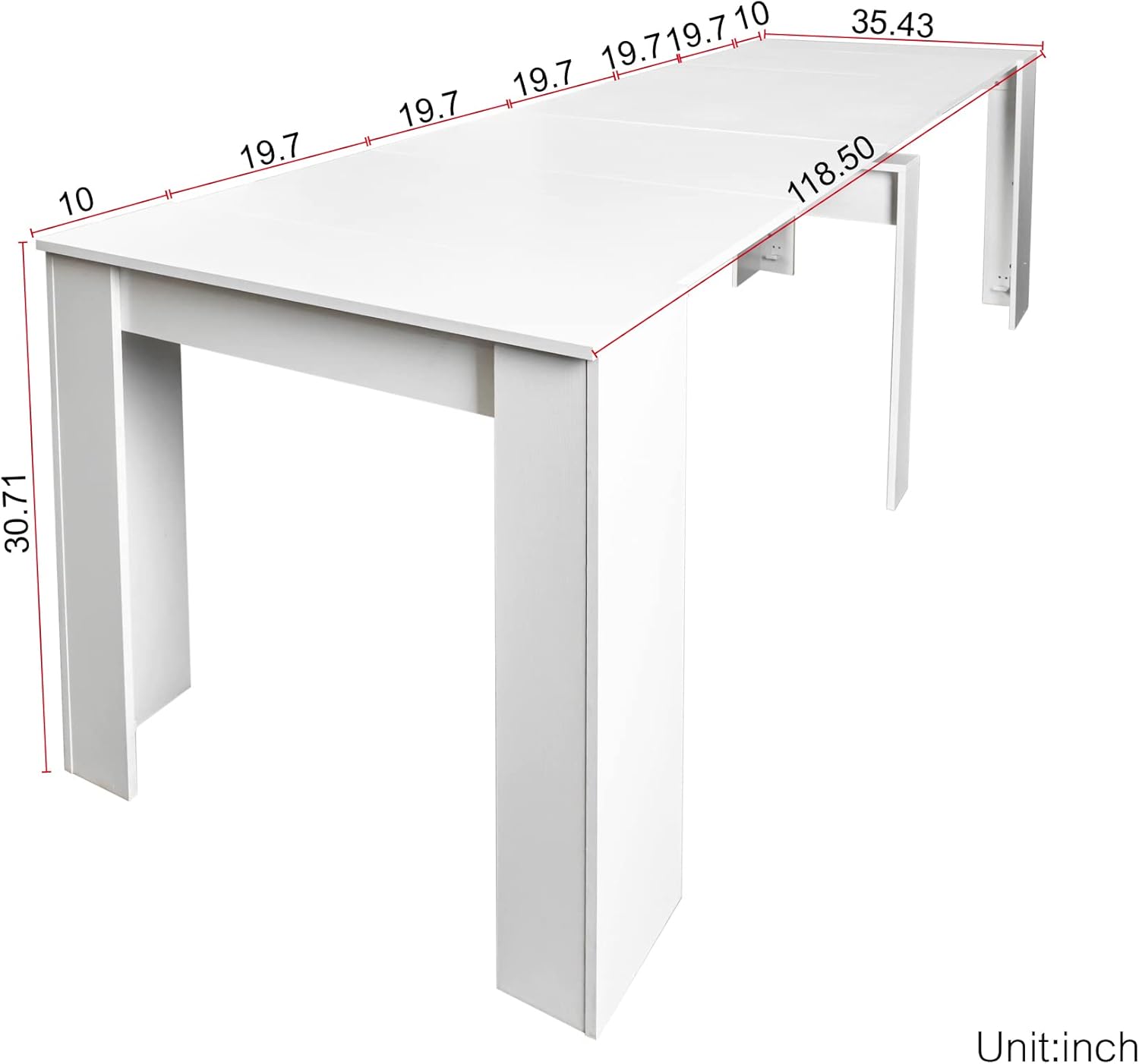 Combining versatility with timeless rustic charm, this dining table stands out with its clever expandable design. Featuring five movable tabletop sections, it effortlessly extends from a compact 20.08 inches to an impressive 118.5 inches, comfortably seating 10 to 12 people. When not extended, the sections neatly tuck away in an integrated extension holder-saving space without compromising style. Crafted from durable MDF and chipboard, the table exhibits a smooth, clean white finish that effortlessly complements a wide range of interior decors,from farmhouse to modern minimalist. Its rectangular silhouette and sturdy construction make it a centerpiece that adapts with ease to our changing needs, whether for casual meals or formal gatherings.