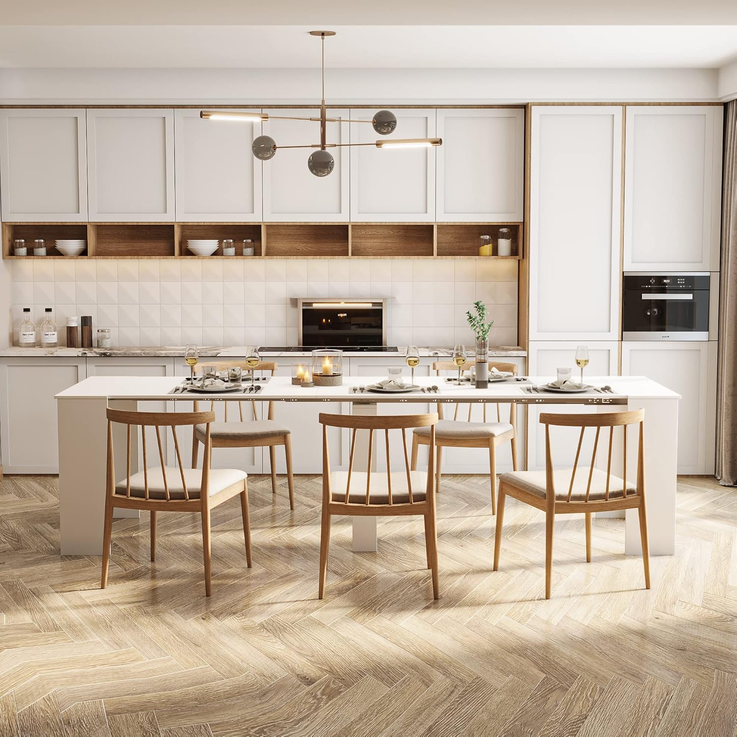 Without chairs included,this dining table becomes an incredibly versatile centerpiece that adapts to various seating options and room styles. Its sturdy MDF legs and chipboard tabletop deliver solid support and stability, easily accommodating 10 to 12 people when fully extended. We found the unique butterfly extension mechanism especially practical - the five movable tabletops slot neatly into a dedicated holder when not in use,helping maintain a clean,spacious environment. The generous size range from 20 to 118 inches means it suits both intimate meals and large gatherings, while the rustic white farmhouse finish adds a timeless charm without overwhelming a room.