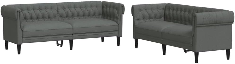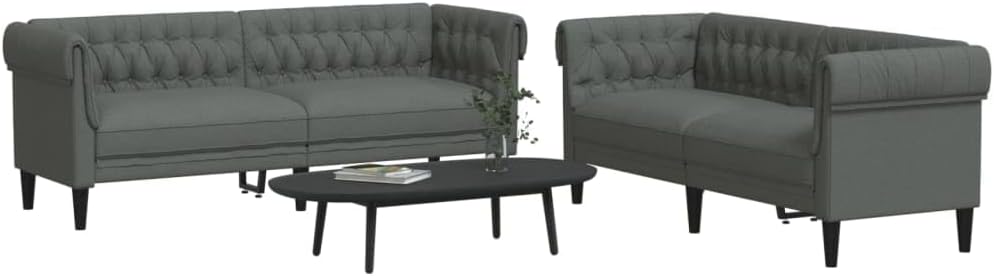 Our living room has truly transformed with this sleek, modern sofa set. The dark grey polyester fabric brings a refined touch while maintaining a neutral palette that gracefully complements a variety of décor styles.Its clean, rectangular silhouette combined with a subtle textured finish elevates the room’s ambiance, turning the furniture into a captivating focal point without overwhelming the existing design elements.The minimalist contours and soft padded armrests create a perfect balance between contemporary style and inviting coziness.