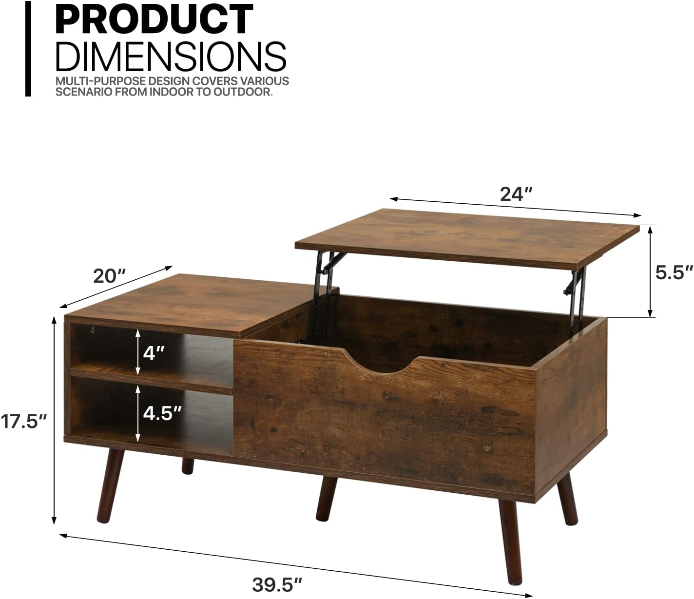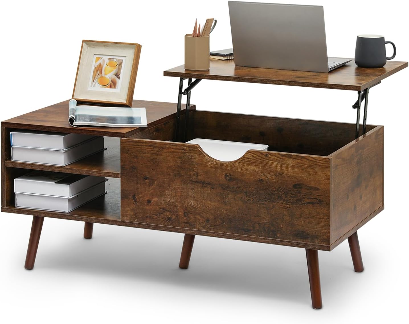 In our⁢ living room setup, this⁤ coffee table has seamlessly combined functionality with rustic charm. The lift-top design is a game changer for us, ‌offering an elevated surface perfect for working on laptops or enjoying meals without the fuss of⁣ a traditional table. Beneath‌ the tabletop, the⁤ spacious hidden‍ compartment ‌neatly stores everyday essentials like remotes, board games, and chargers, helping us keep ‌the clutter out of sight.‌ The removable side shelf adds versatility, accommodating various⁤ sized items-from magazines ⁢to decorative pieces-without taking up extra floor space.