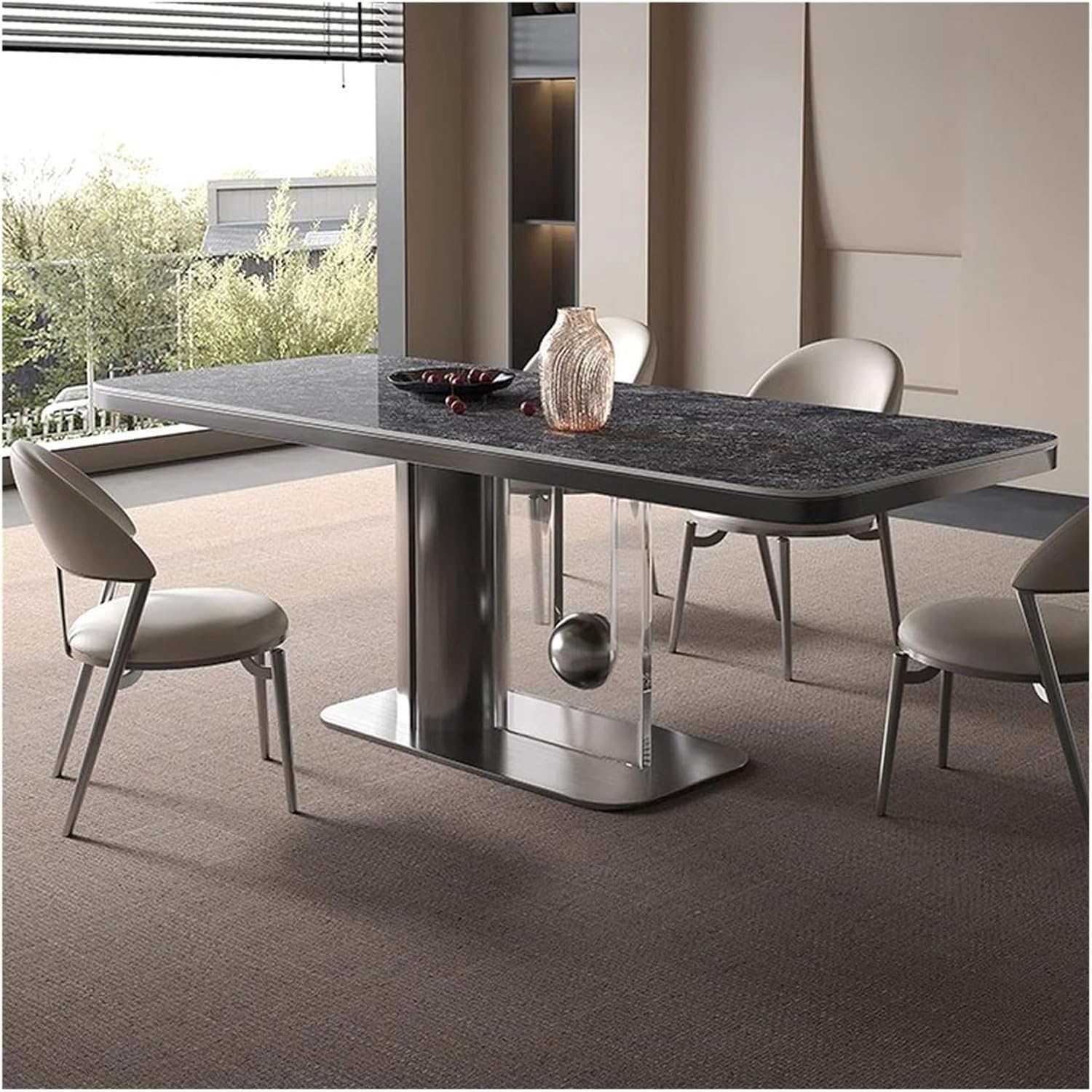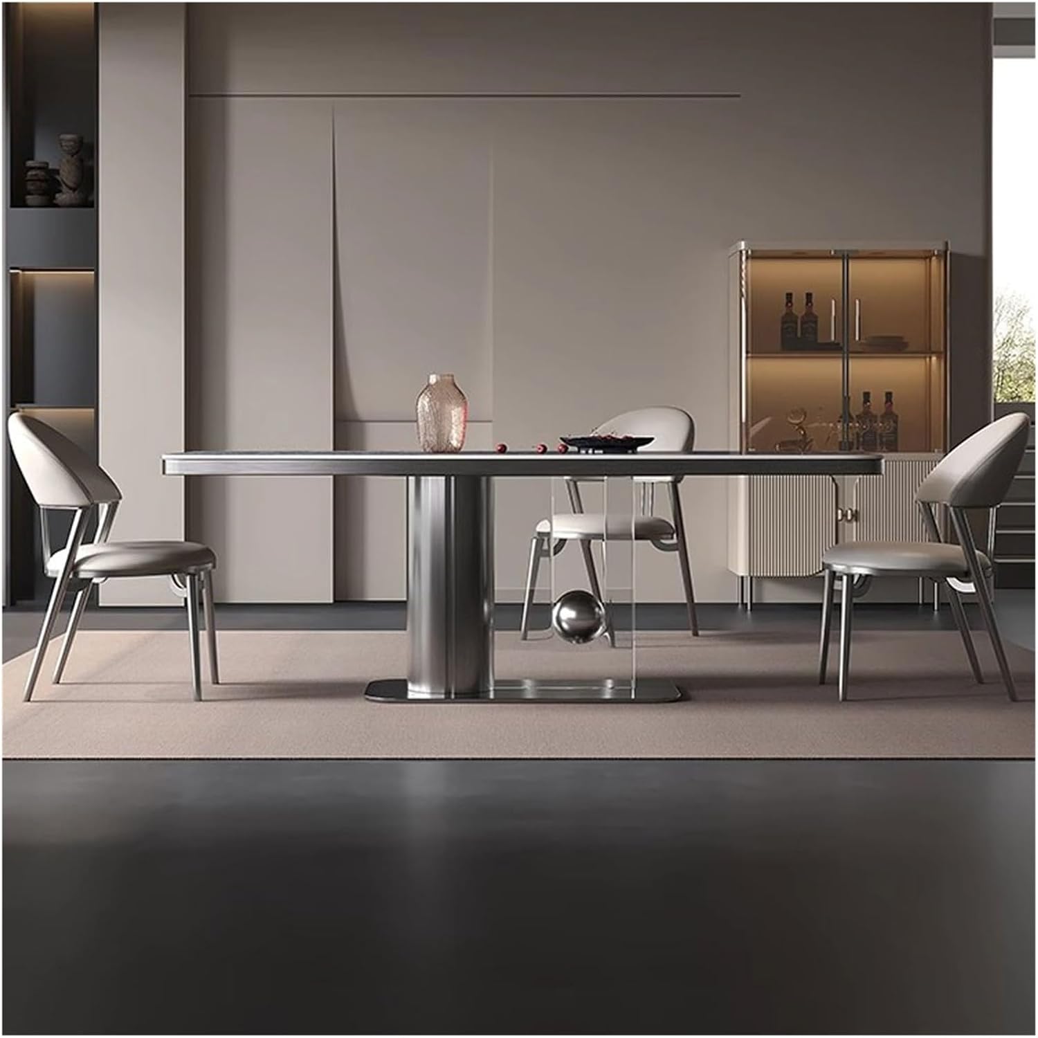 In compact living spaces, maximizing every inch without sacrificing style or functionality is essential. This table excels as a versatile centerpiece, offering a generous surface area of 180cm by 85cm while maintaining a slim profile that fits comfortably in small apartments and cozy kitchens. Its ability to transition seamlessly from a dining table to a computer desk or study area makes it a multifunctional asset, perfectly suited for our modern, flexible lifestyles. The thickened 304 stainless steel legs, designed not only for durability but also for artistic flair, support up to 500KG, ensuring a sturdy foundation that doesn’t compromise on elegance.