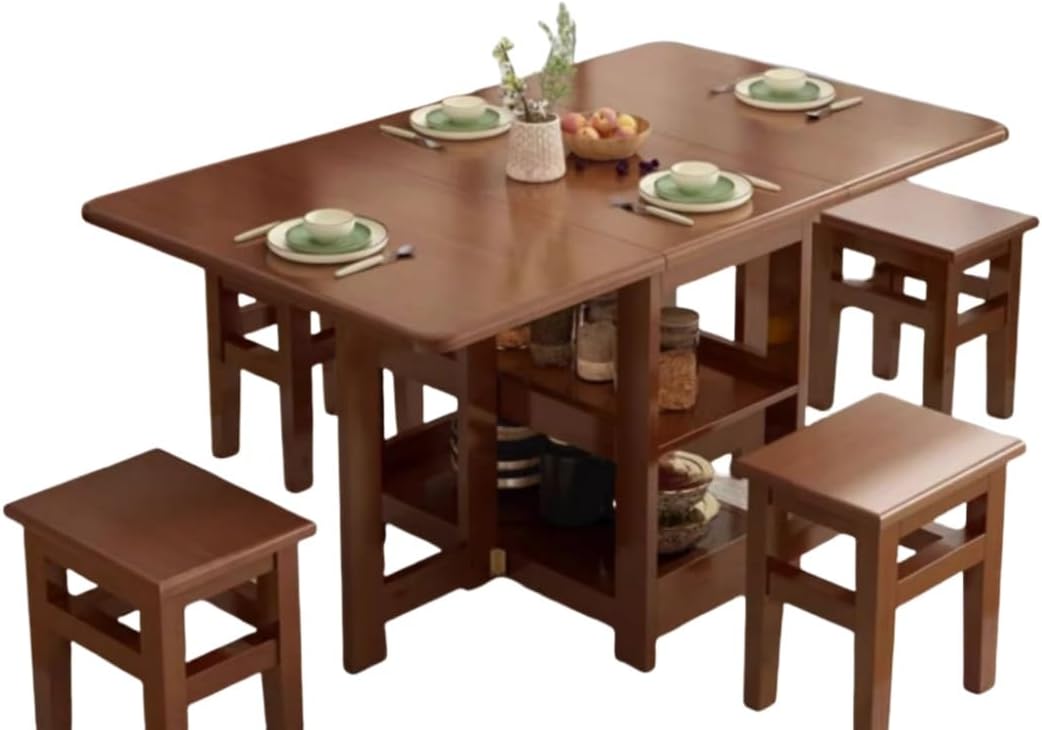 In our search for a dining solution that perfectly fits compact living spaces without sacrificing style or functionality, we recently tried out the Solid Wood Folding Dining Table set. This versatile piece caught our eye with it’s clean, rectangular design and thoughtful features like drop leaves and integrated wheels, making it easy to move and expand as needed. What truly impressed us was how the table seamlessly transforms from a cozy nook for two into a full dining area for six, accommodating different occasions with ease. Alongside four matching chairs and handy two-tier storage racks, it promises both comfort and organization – ideal for anyone looking to maximize their space without clutter. After spending some quality time with this brown, solid wood table measuring 140 by 80 by 75 cm, we’re ready to share our hands-on experience and insights.