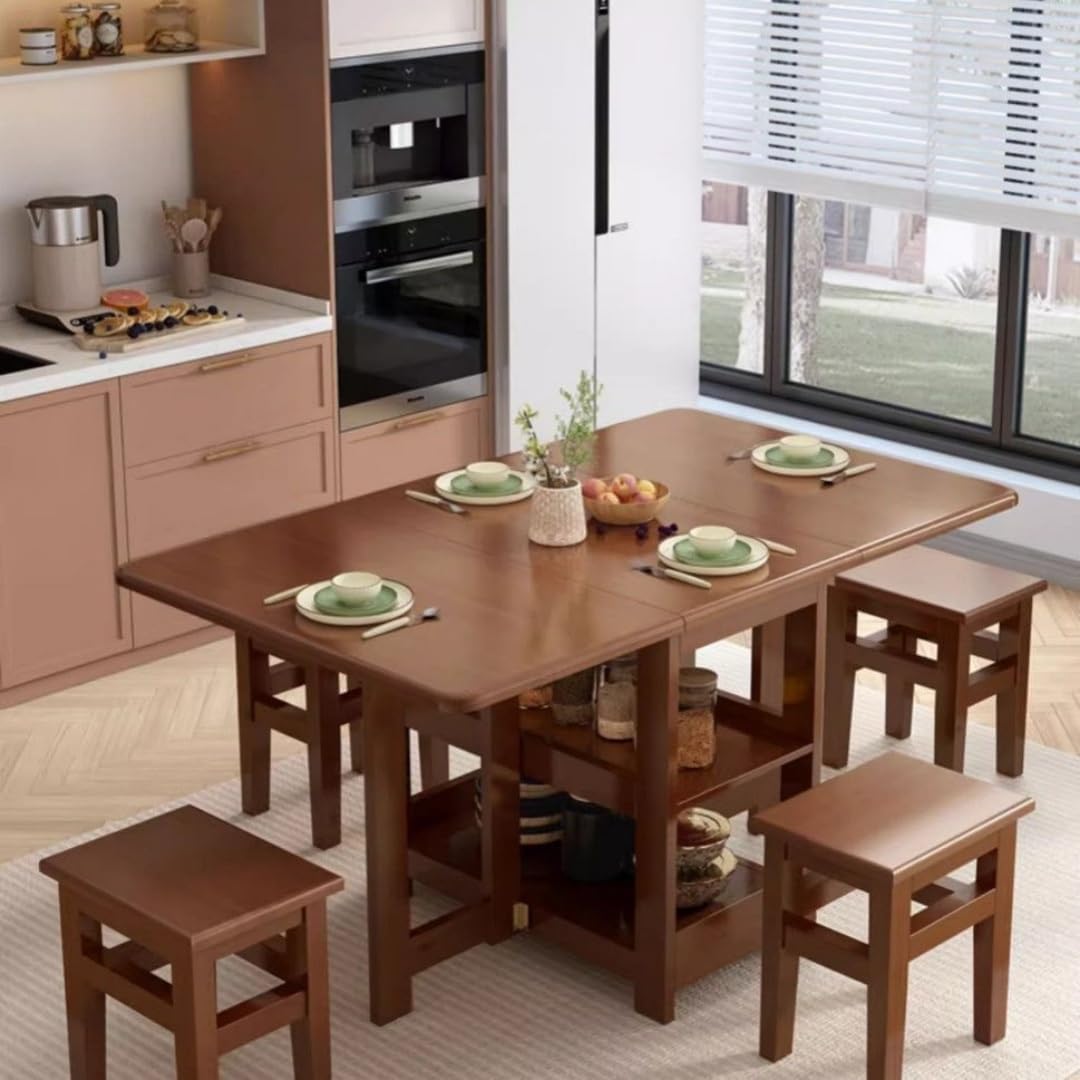 This table’s classic brown solid wood finish and simple rectangular design lend themselves naturally to a variety of décor themes. In a modern minimalist space, its clean lines and multifunctionality allow it to blend seamlessly without overwhelming the room. For those embracing a rustic or farmhouse look, the natural wood grain and sturdy build add warmth and authenticity. The folding and drop-leaf features bring versatility, enabling it to contract for a cozy corner or expand for larger gatherings, which is perfect for adapting to both open-plan and compact living areas.