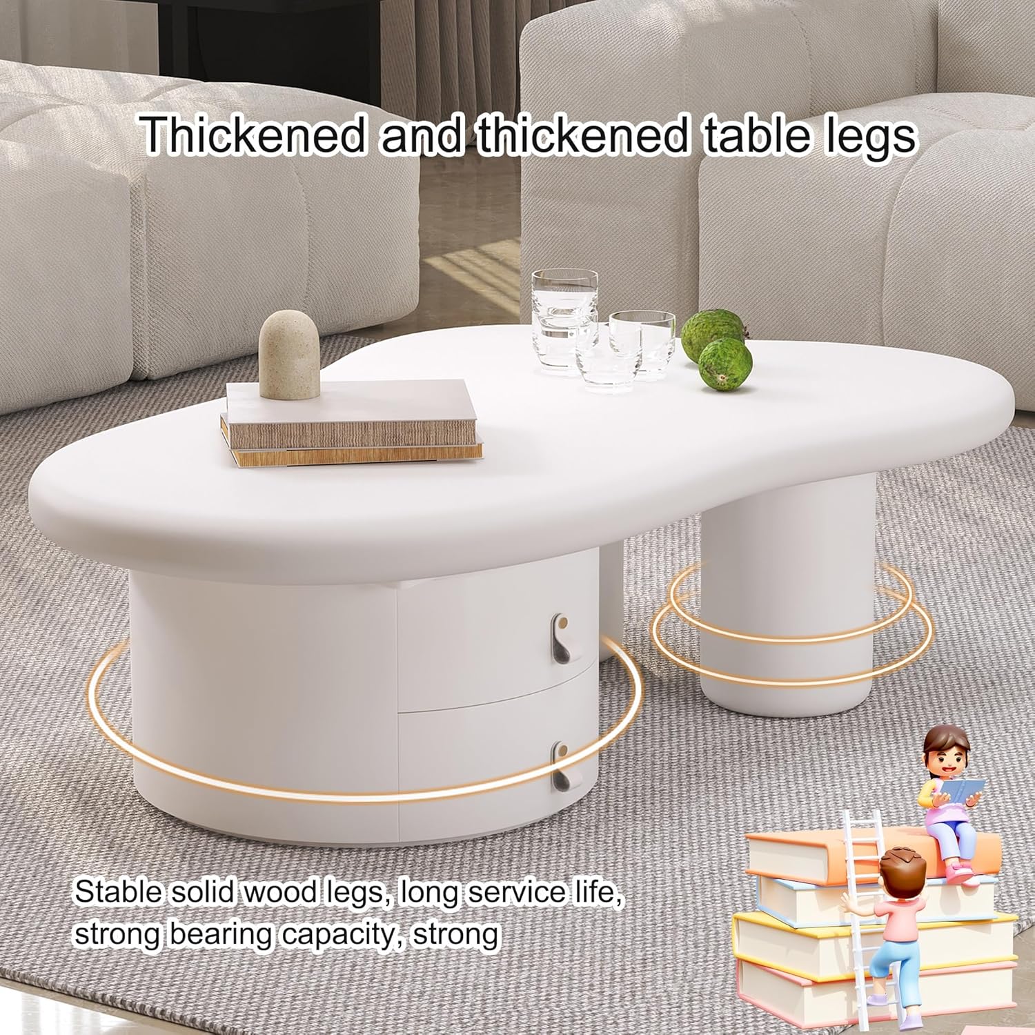 the artistic design of this coffee table instantly adds a fresh, modern flair to any room we place it in. Its irregular cloud shape is not merely decorative; it creates a natural flow and softness that contrasts beautifully with more angular furniture.The smooth, curved edges do more than enhance its visual appeal-they provide safety and comfort, especially for homes with children. the thickened, reinforced solid wood legs offer a stable, durable foundation, giving us confidence that the table can handle everyday use and occasional heavy loads without any wobbling or wear.