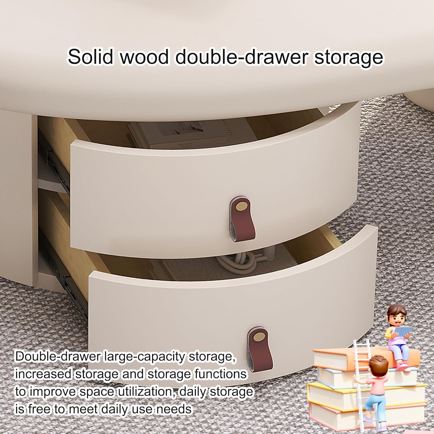 Beyond aesthetics, these drawers offer ample storage capacity that maximizes space utilization without compromising the table’s unique, cloud-inspired design. Their solid wood construction paired with an eco-friendly E1 grade piano baking varnish finish means the drawers are durable, safe, and easy to clean-simply wiping them down keeps the surfaces spotless and shining. Key practical features include: