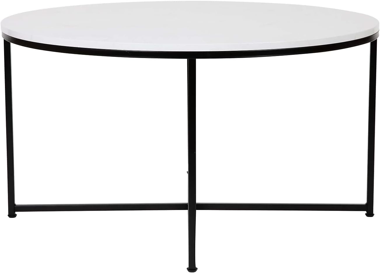 Our first impressions of this modern piece center around its seamless blend of elegance and practicality.The striking white marble-finish engineered wood top immediately elevates the aesthetic of any room, lending a polished, refined vibe without overwhelming the space.Its 0.5-inch thickness ensures a robust surface that confidently handles everyday use, whether for coffee, snacks, or decorative accents. The crisscross matte gold frame not only supports the table sturdily but also adds an eye-catching geometric element that boosts the modern appeal. We found the overall size-35.5 inches in diameter and 19.25 inches tall-perfect for various living areas, striking a nice balance between presence and accessibility.