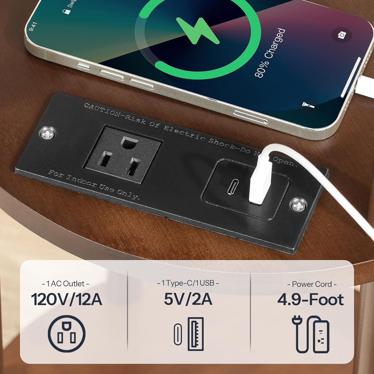 Integrating a charging station into a side table transforms the way we interact‍ with our living and sleeping​ spaces. This design features ⁢an AC outlet, a USB-A port, and a Type-C ⁤port, all powered ‌by a 4.9-foot cord, offering unparalleled convenience to⁢ keep our​ devices ready and within reach. Whether it’s charging our ​phones, headphones, or bedside lamps, the setup eliminates clutter from extension cords and ‍keeps essential gadgets juiced up effortlessly.