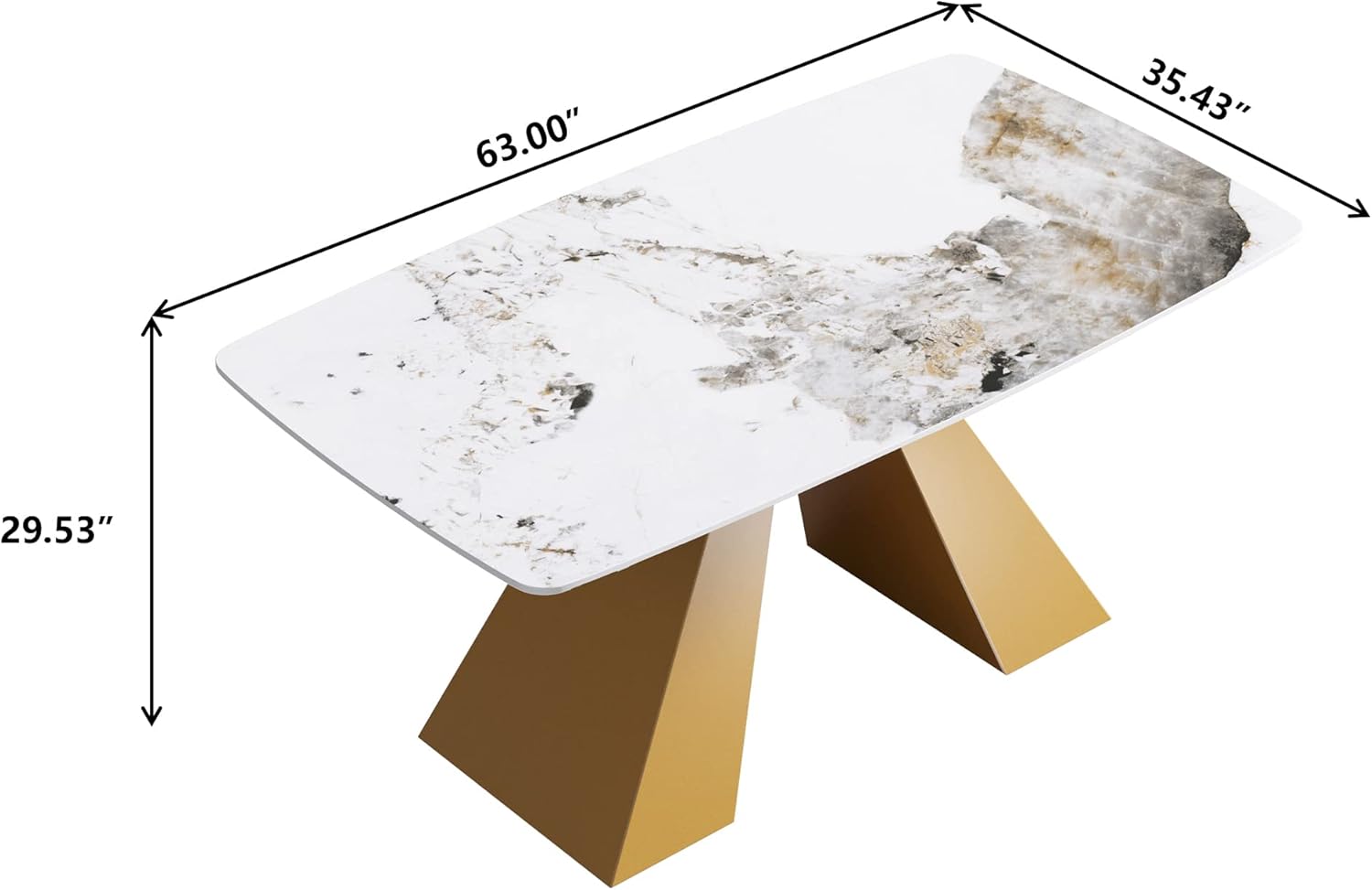 Thanks to its generous size and thoughtful design, the table works beautifully in both casual and formal dining areas. It’s ideal for eclectic interiors where a mix of styles come together harmoniously - the curved edges soften the overall look while the golden legs inject a subtle glam factor. For those preferring a more classic or transitional vibe, the combination of clean white surfaces with metal accents serves as a tasteful bridge between traditional and modern furniture pieces.
