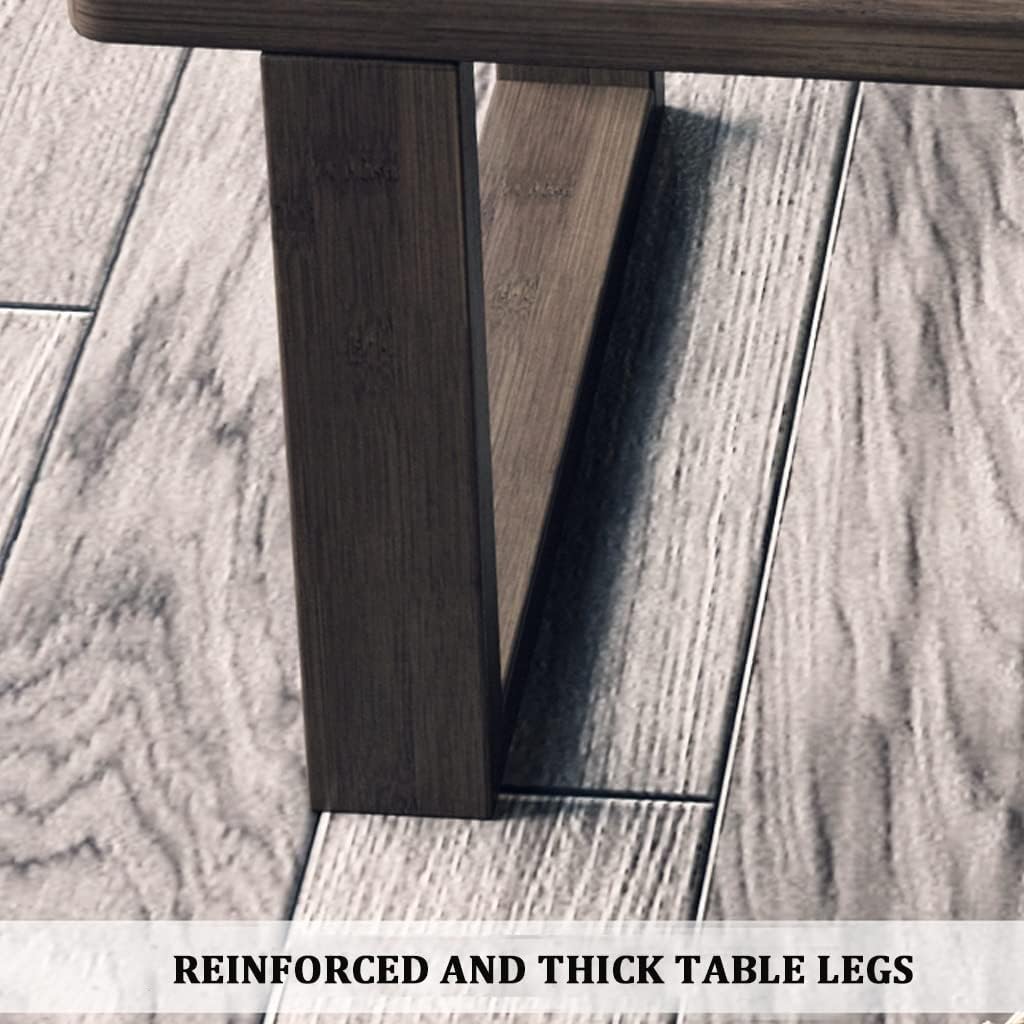 Our experience with this bamboo table has been quite positive, especially because of its balance between functionality and design. Crafted from natural bamboo, the surface is smooth and durable, offering a sturdy experience whether used as a coffee table or a compact work station. The reinforced thick legs provide excellent stability, ensuring it handles daily use without wobbling or wear. its lightweight and portable nature make it incredibly easy to move around the house, fitting comfortably in various spaces from the living room to the bedroom or even outdoors.