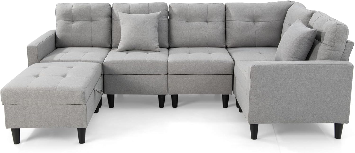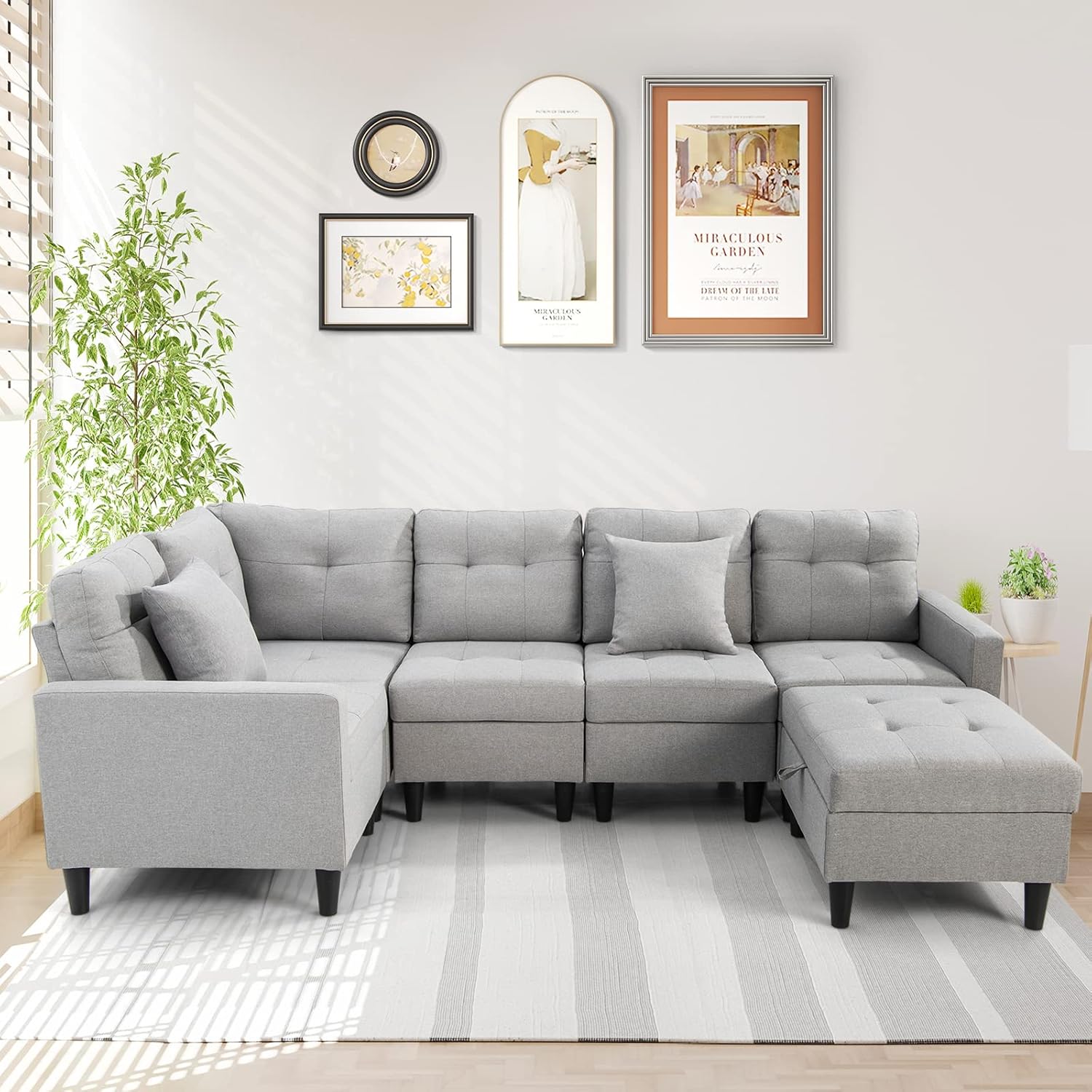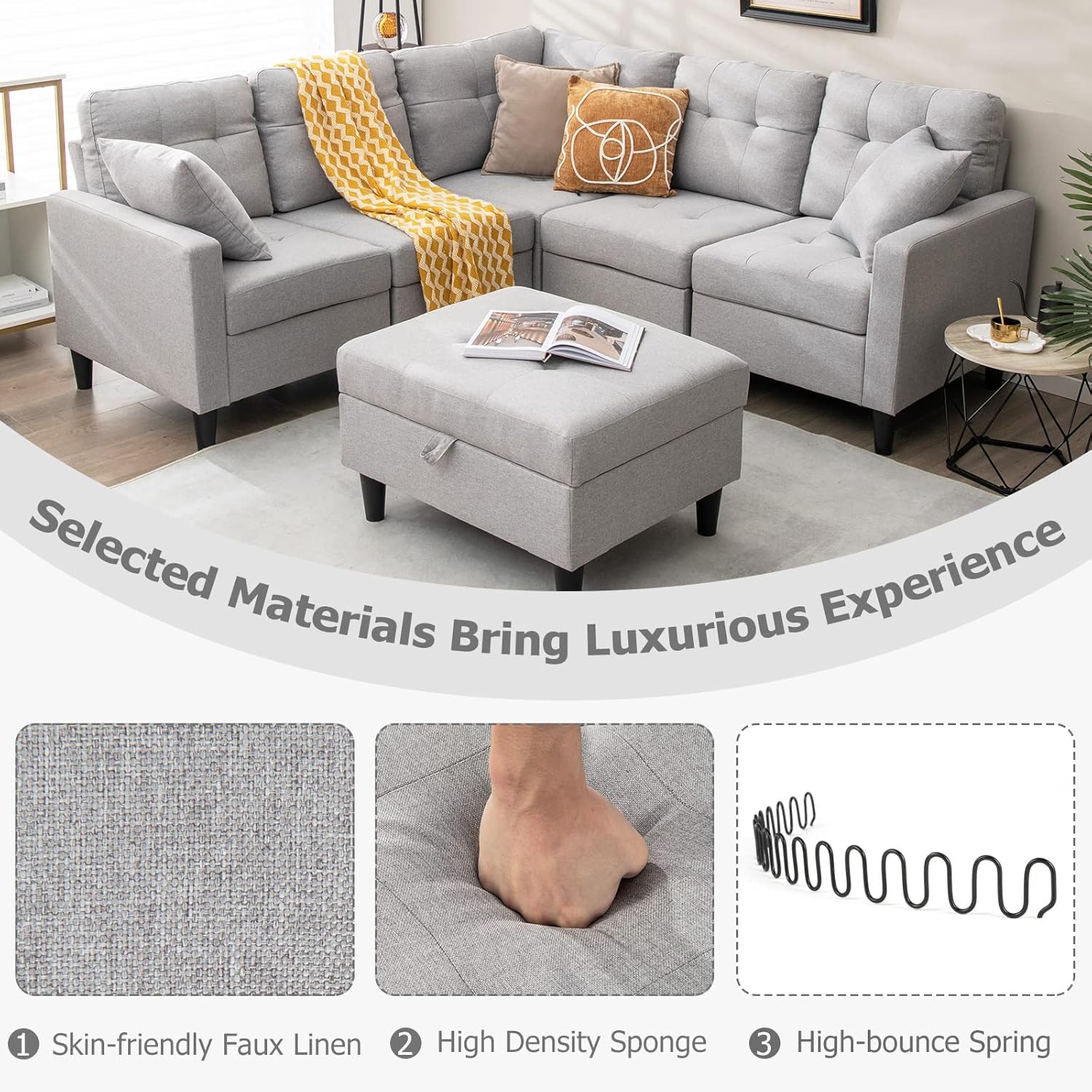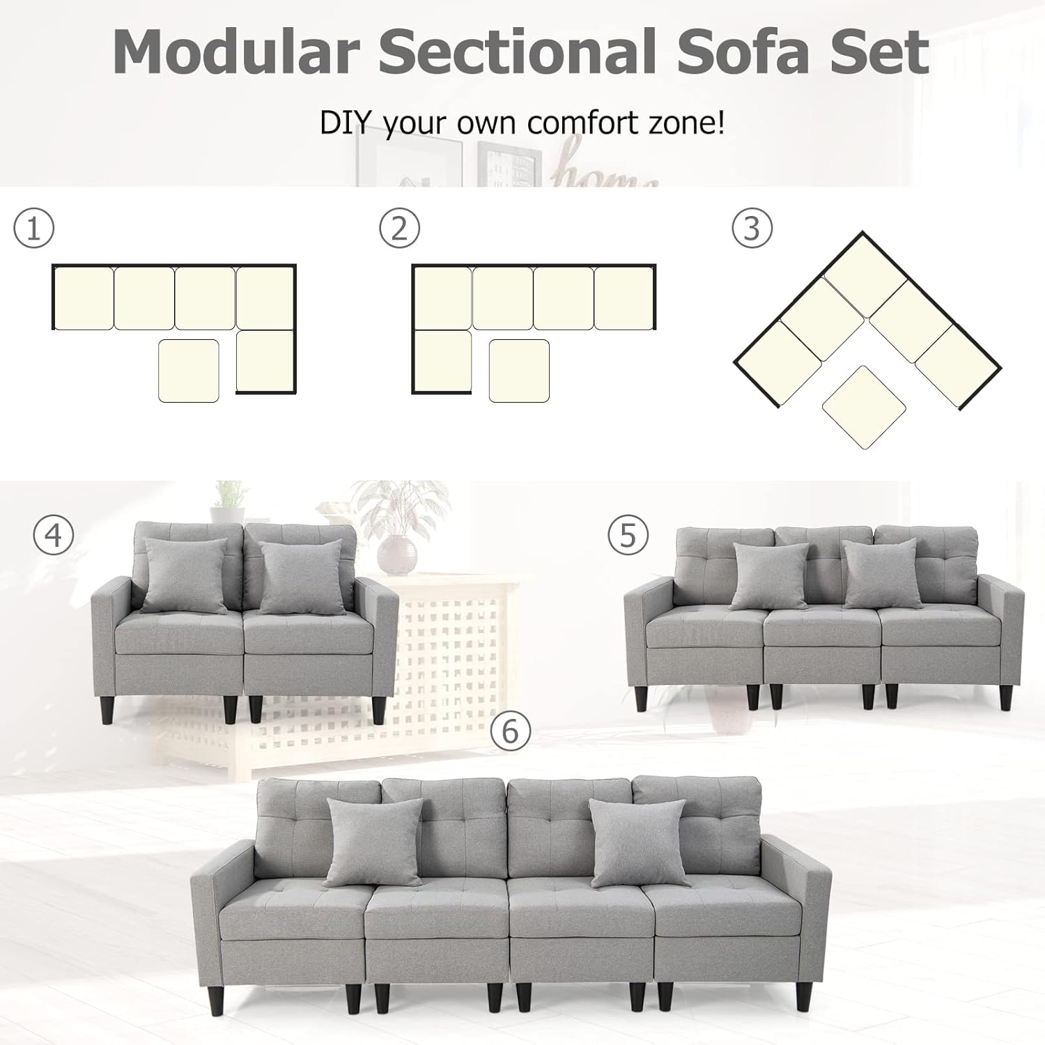 This modular sectional is designed to⁤ transform living spaces with its versatile L-shaped configuration⁤ and complementary ottoman. Crafted from breathable, skin-friendly faux linen, it offers a plush seating experience thanks to thick cushions and a high ‍backrest that provide⁢ excellent support. The wide armrests and two removable, PP⁤ cotton-filled pillows add an extra layer of comfort,⁤ making it an inviting spot to unwind after a long day. Its modern tufted design combined with elegantly raised legs brings ‌a subtle sophistication,⁣ fitting seamlessly into a range of interior styles.
