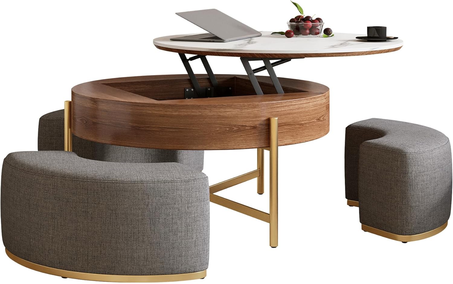 In our search for teh perfect blend of style, functionality, and space-saving design, we recently came across the Lift-Top Round Coffee Table with Storage, accompanied by three upholstered nesting ottomans. This modern center table caught our attention not only because of it’s sleek combination of warm walnut wood veneer and rugged burned stone tabletop but also due to its clever storage solutions that promise to keep any living room tidy and inviting.Having spent some time with this piece, we’ve explored how its thoughtful construction and minimalist design fit into our everyday living space, making tidying up easier and gatherings more comfortable. Join us as we dive into the details of this multi-purpose coffee table and share how it performed in our home.