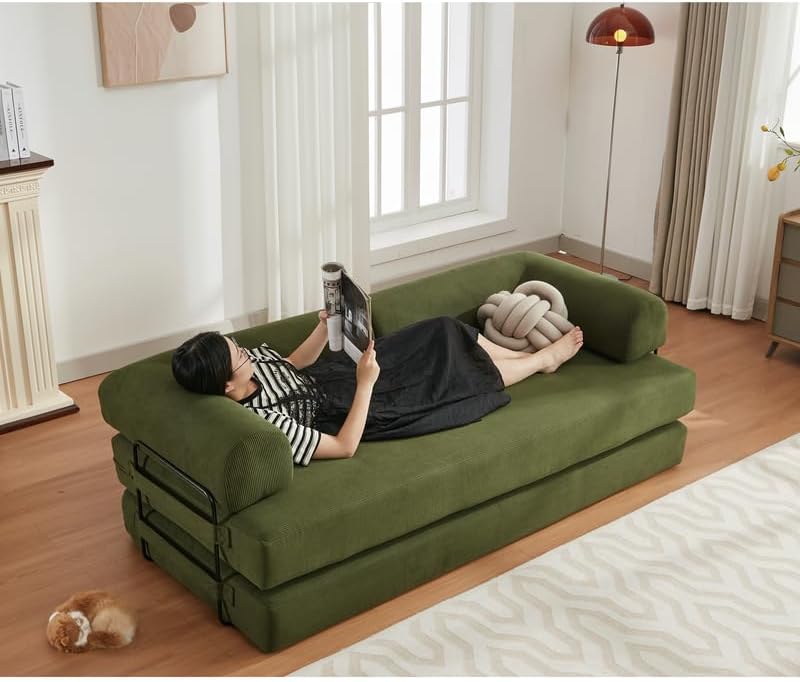 With its breathable, corduroy upholstery and high-density foam layered over pocket springs, this sofa bed delivers not only space efficiency but also lasting comfort for guests or daily use.The rolled arms and premium stitching give it a modern aesthetic that blends seamlessly into both minimalist and cozy interiors. Whether welcoming visitors or relaxing in a tight apartment living room, this convertible couch helps us optimize functionality without sacrificing style.