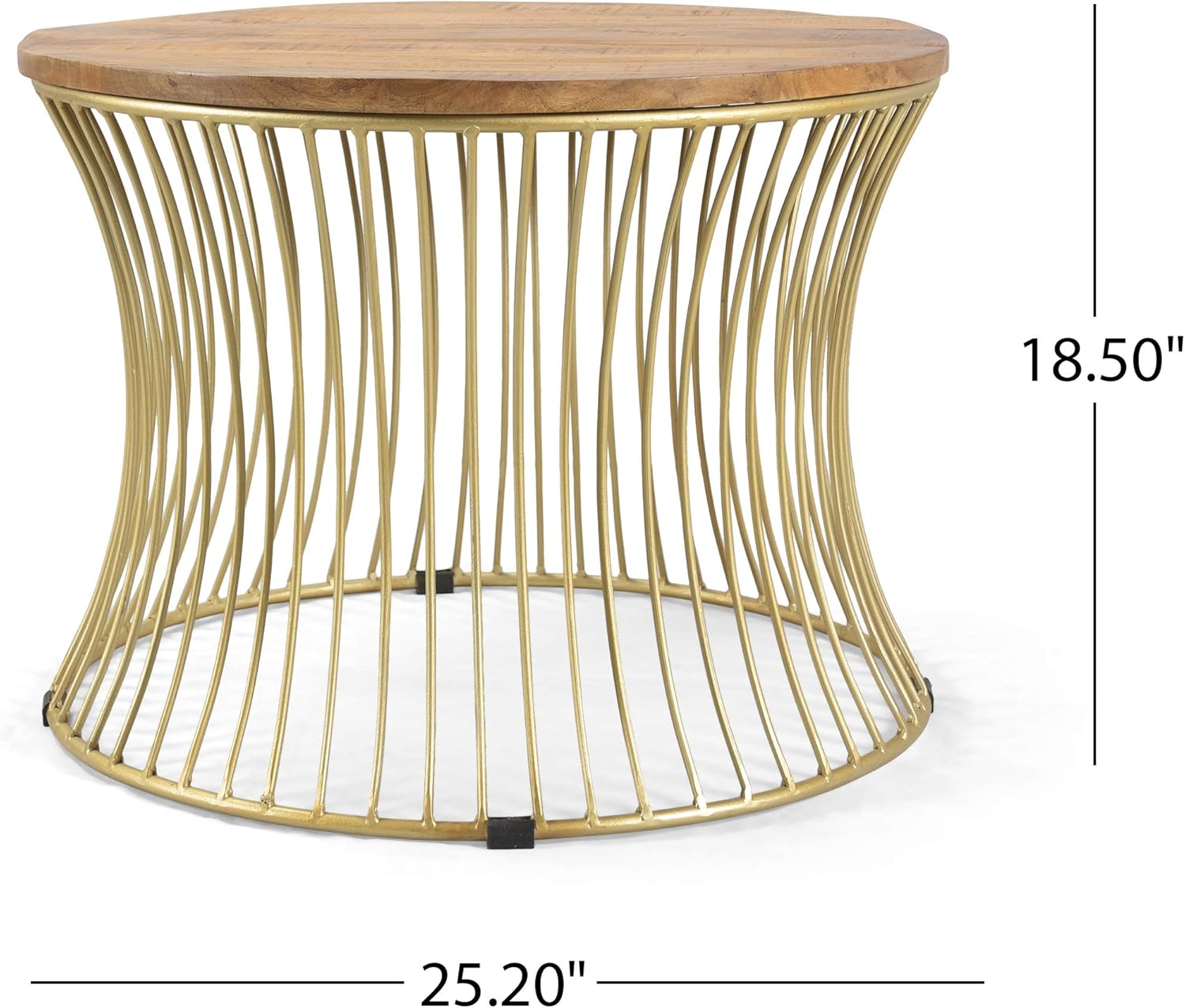 From the moment we saw this piece, its unique blend of natural warmth and sophisticated design immediately caught our attention. The hand-crafted circular tabletop, made of rich mango wood, displays stunning golden-brown hues and distinctive grain patterns that ensure each table is truly one-of-a-kind. Combined with the elegant hourglass-shaped iron base finished in gold, it effortlessly infuses any living room with a bold boho glam vibe while maintaining a refined atmosphere. What stood out most was the excellent balance of aesthetics and functionality-the sturdy iron rod design delivers notable stability, making it more than just a lovely centerpiece.