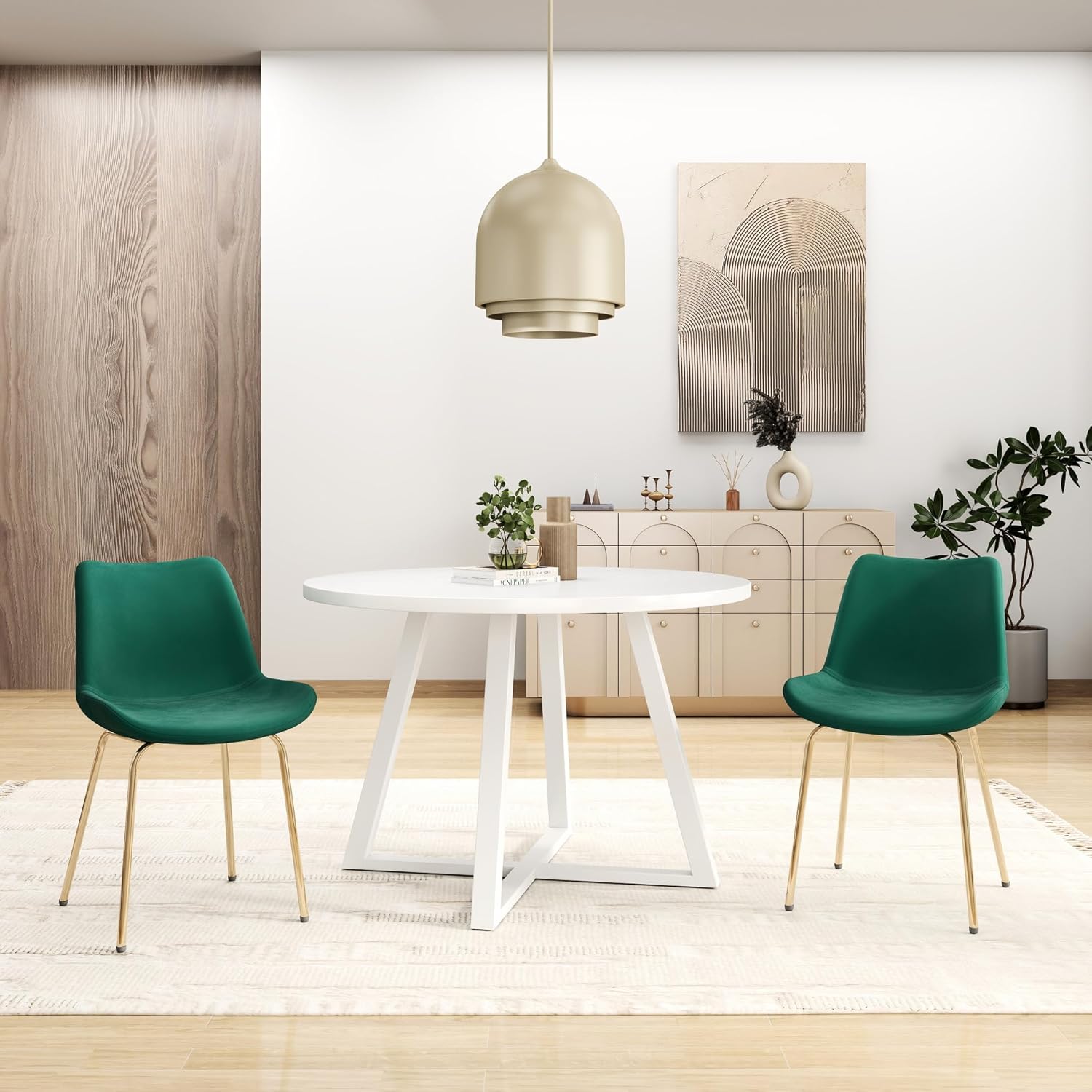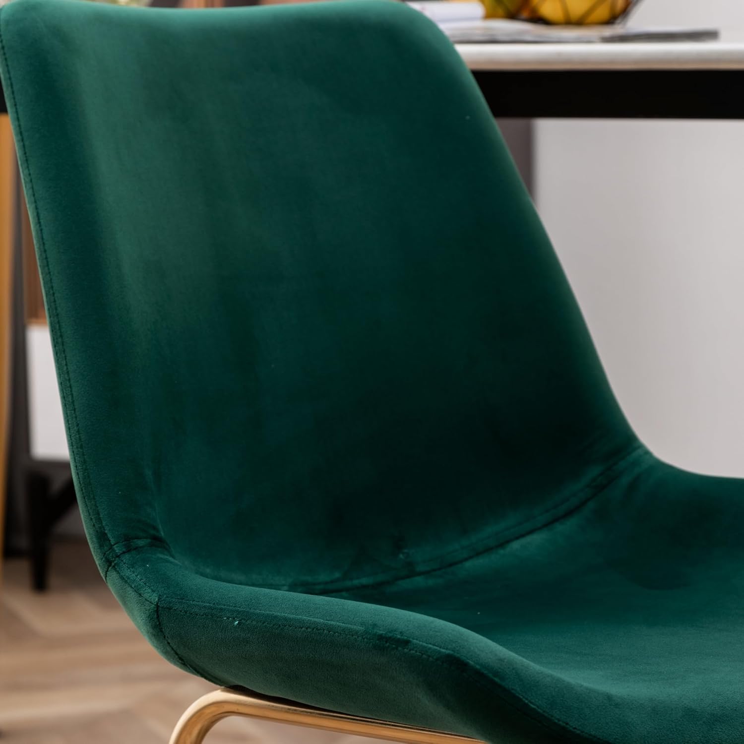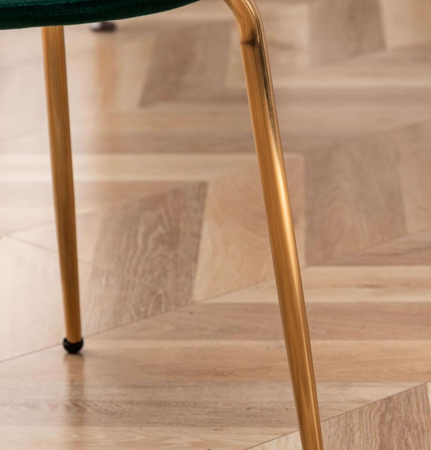 the combination of the plush velvet upholstery and the resilient metal frame strikes a perfect balance between style and comfort. they feel supportive yet inviting and the enhanced durability of their construction reassures us that they will endure everyday use gracefully. This seamless fusion of comfort and aesthetics makes these chairs a standout choice for anyone seeking a dining setup that is both functional and fashionable.