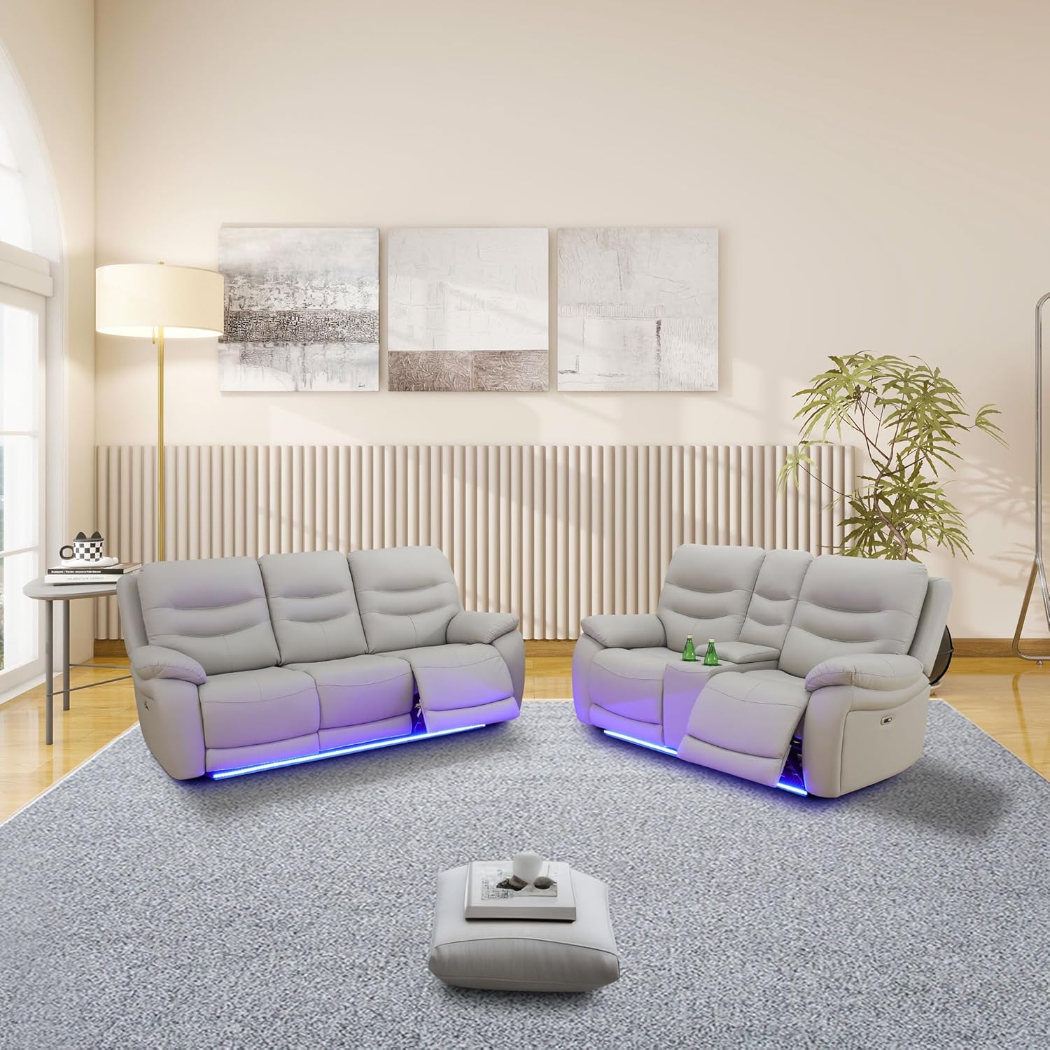 After spending considerable time with this reclining sofa set, we truly appreciate the blend of style, comfort, and functionality it brings to any space. The high-quality faux leather feels soft yet durable, making maintenance worry-free. We found the electronic reclining mechanisms to be responsive and smooth, allowing us to easily find the perfect angle for any activity-from binge-watching our favorite shows to relaxing with a book. The built-in LED lighting added an unexpected yet delightful cinematic vibe,creating a cozy ambiance that elevated movie nights and gatherings. Assembly was straightforward and quick, with clear instructions and all necessary hardware included, so setting it up was hassle-free.