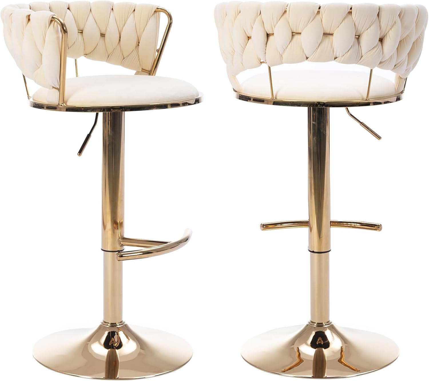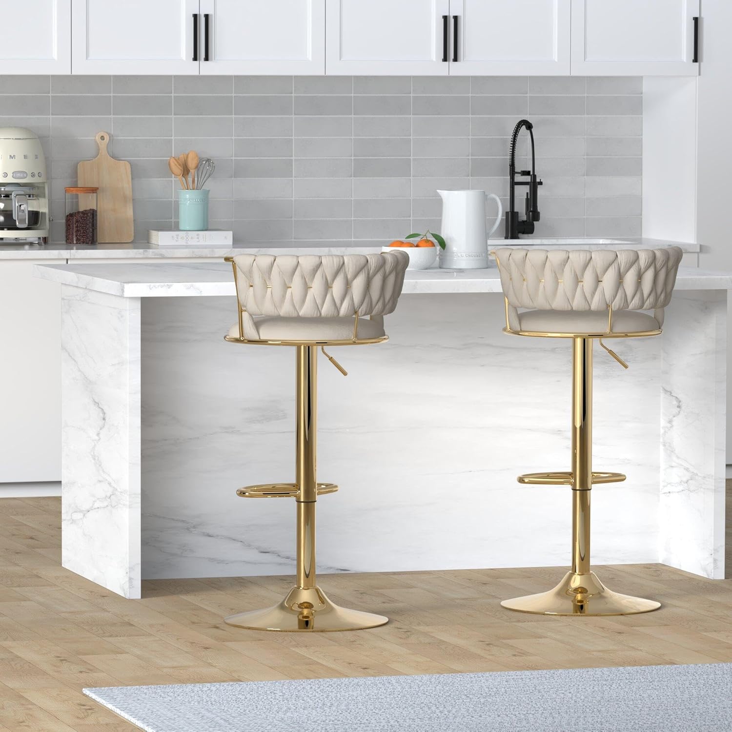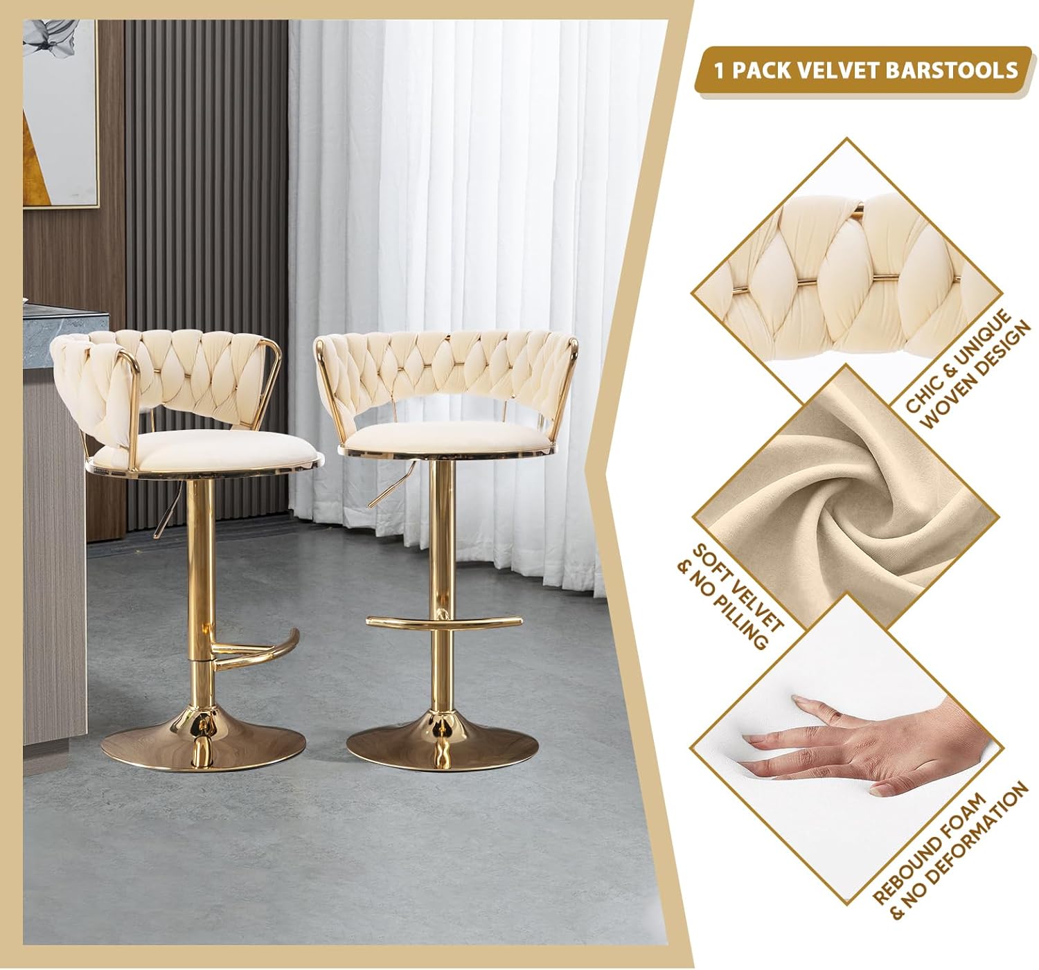 | Modern homes & kitchens | Soft velvet upholstery, stylish woven back, sturdy metal base | Height adjustable but not ideal for very tall counters |