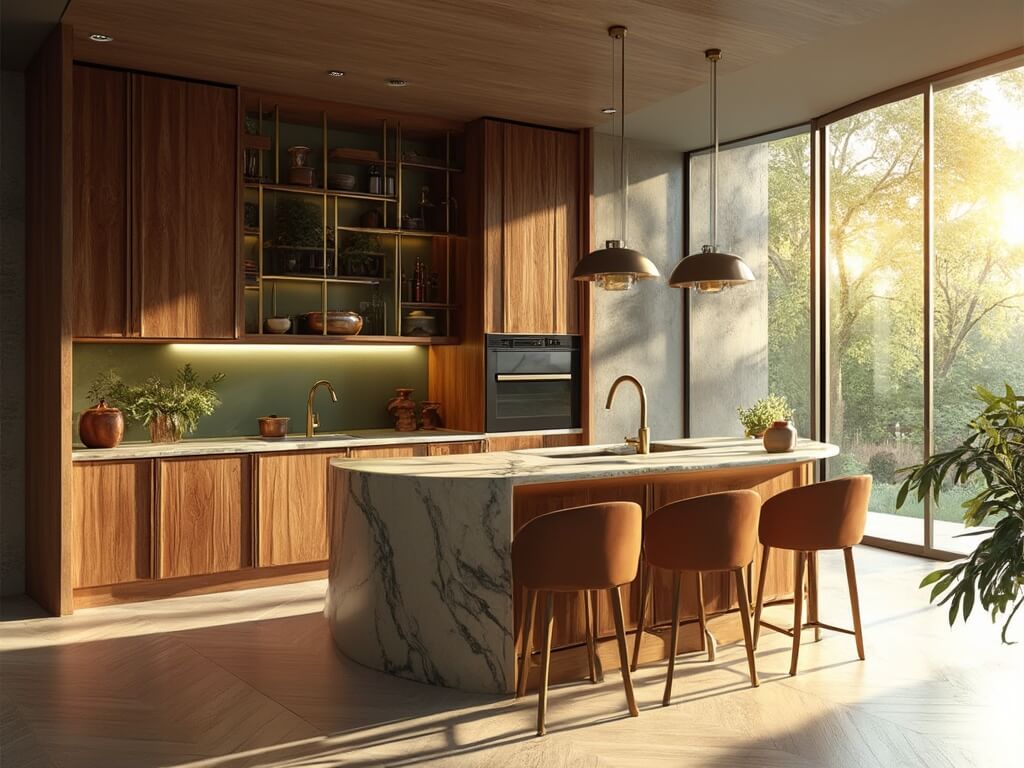 - Luxurious wooden cabinetry with deep, inviting grains