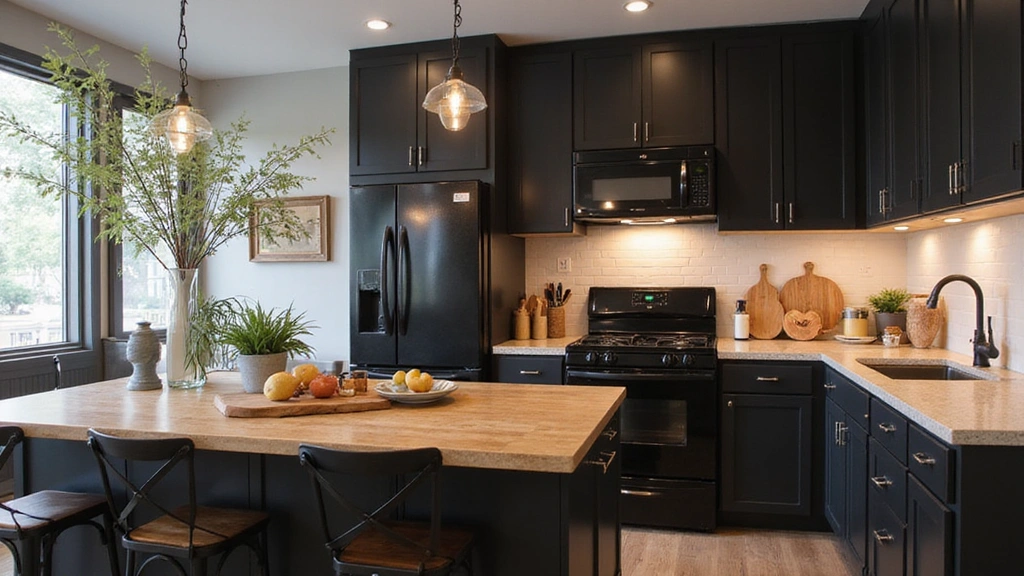 Unexpected black furniture pieces create focal points that enrich your kitchen’s aesthetic while boosting functionality, making your space both inviting and practical.