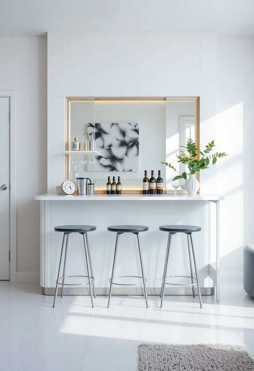 Incorporating mirrored accents into your small living room bar can create a stunning sense of depth and spaciousness. Mirrors reflect light and surroundings, making the area feel larger and more inviting. Consider using a mirrored bar cart or shelving that showcases your glassware while allowing the surroundings to bounce off its surface. this not only adds elegance but also visually expands your available space, providing the illusion of a more open environment.