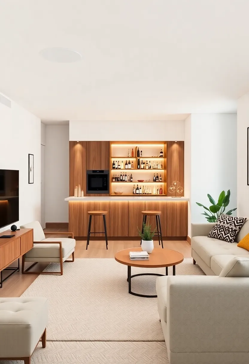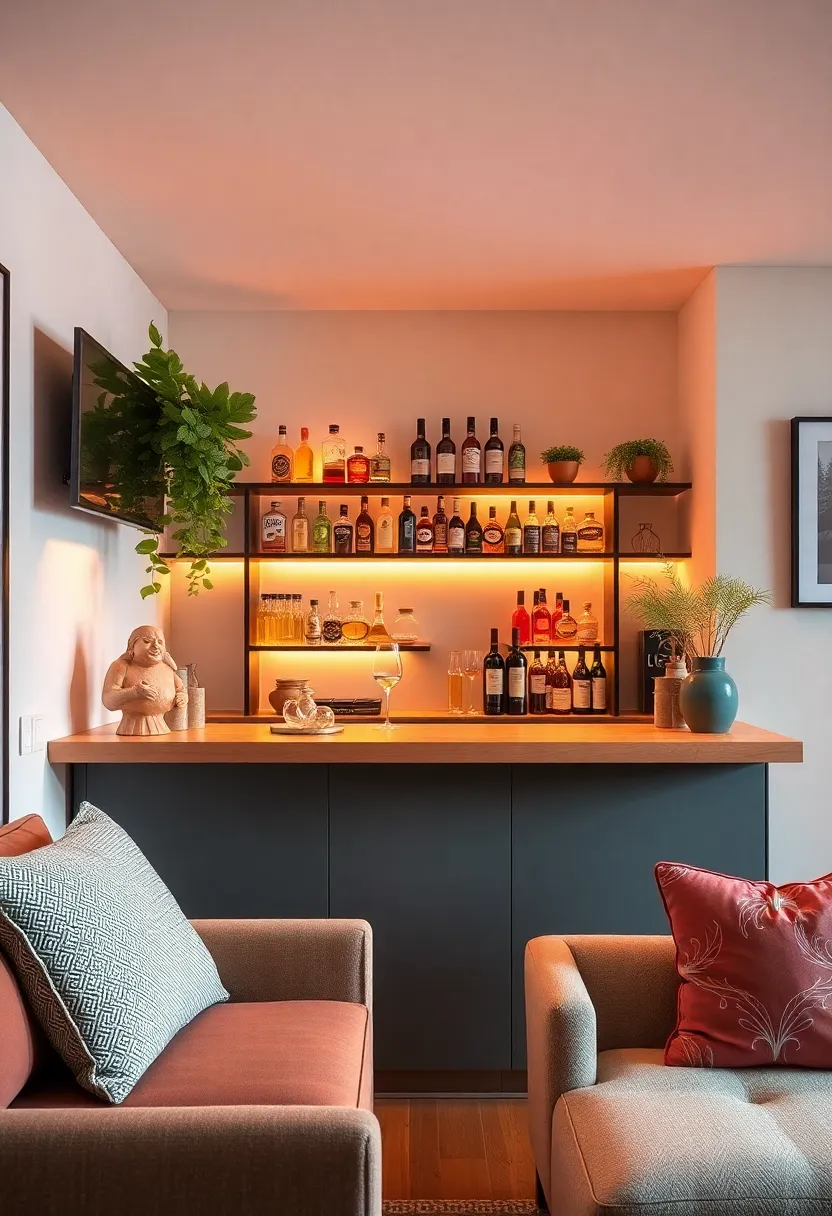 Transforming your small living room bar into a true reflection of your personality is an exciting opportunity to showcase your unique tastes. Consider creating a vintage speakeasy vibe with dark woods, brass accents, and retro barware that invites intimate gatherings. Alternatively, if you lean towards a more modern aesthetic, a minimalist Scandinavian design with light colors, sleek lines, and open shelving can make your space feel both airy and sophisticated. Think about incorporating quirky decor elements like playful cocktail shakers or canvas art that reflects your favorite cocktails and experiences.