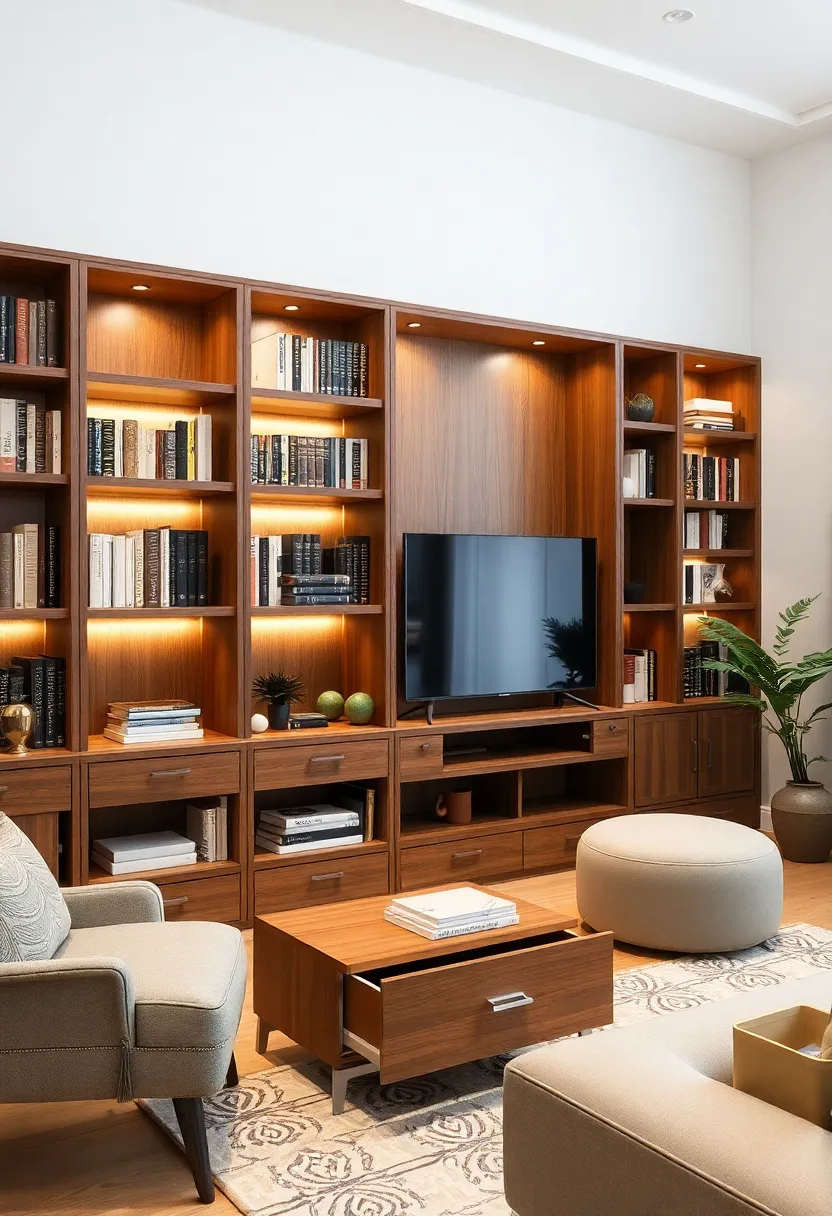 By thoughtfully integrating lighting into your bookcase, you can create a multi-functional space that encourages both display and utility, elevating your living room to new heights of style and comfort.