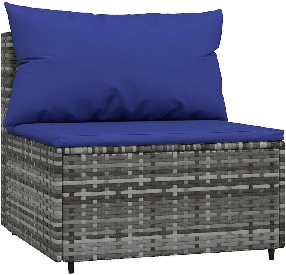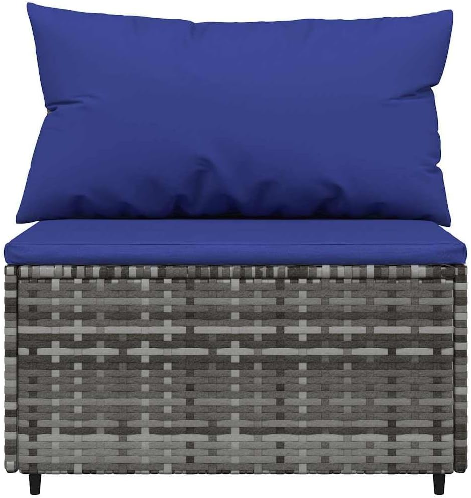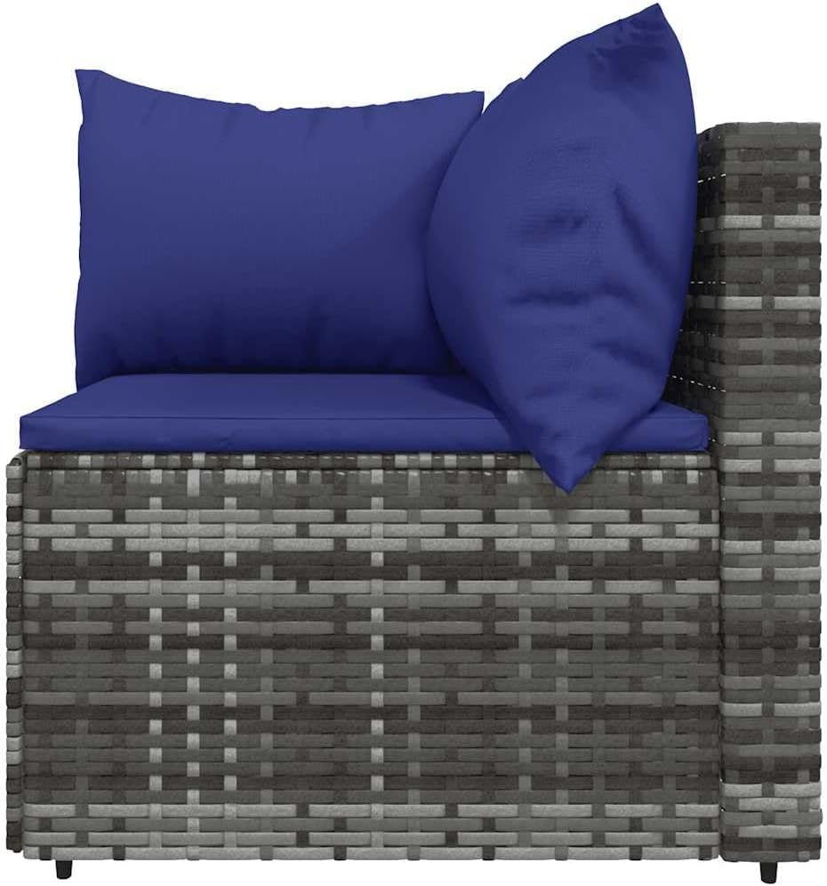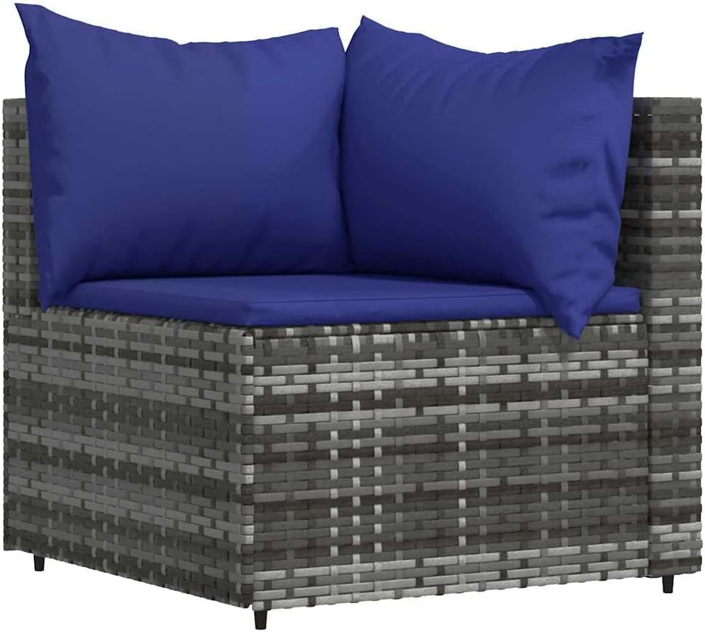 We are truly impressed by how this set blends contemporary style with practical outdoor living. The sleek gray poly rattan weave creates a refined, clean look that instantly elevates any patio space. Its modular construction allows flexibility in arrangement, making it easy for us to customize the setup exactly to our needs. The powder-coated steel frame not only adds visual sturdiness but also reassures us about the durability and stability of the furniture for regular outdoor use. Weather-resistant materials keep the entire set looking fresh season after season, while the subtle dark blue cushions bring a sophisticated contrast without overpowering the overall design.