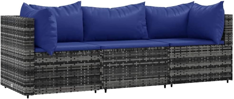 | Modern,stylish Design: The sleek gray poly rattan combined with dark blue cushions gives it a contemporary look that enhances any outdoor space. | Outdoor Use Only: Not suitable for indoor placement, limiting versatility and requiring outdoor storage considerations. |