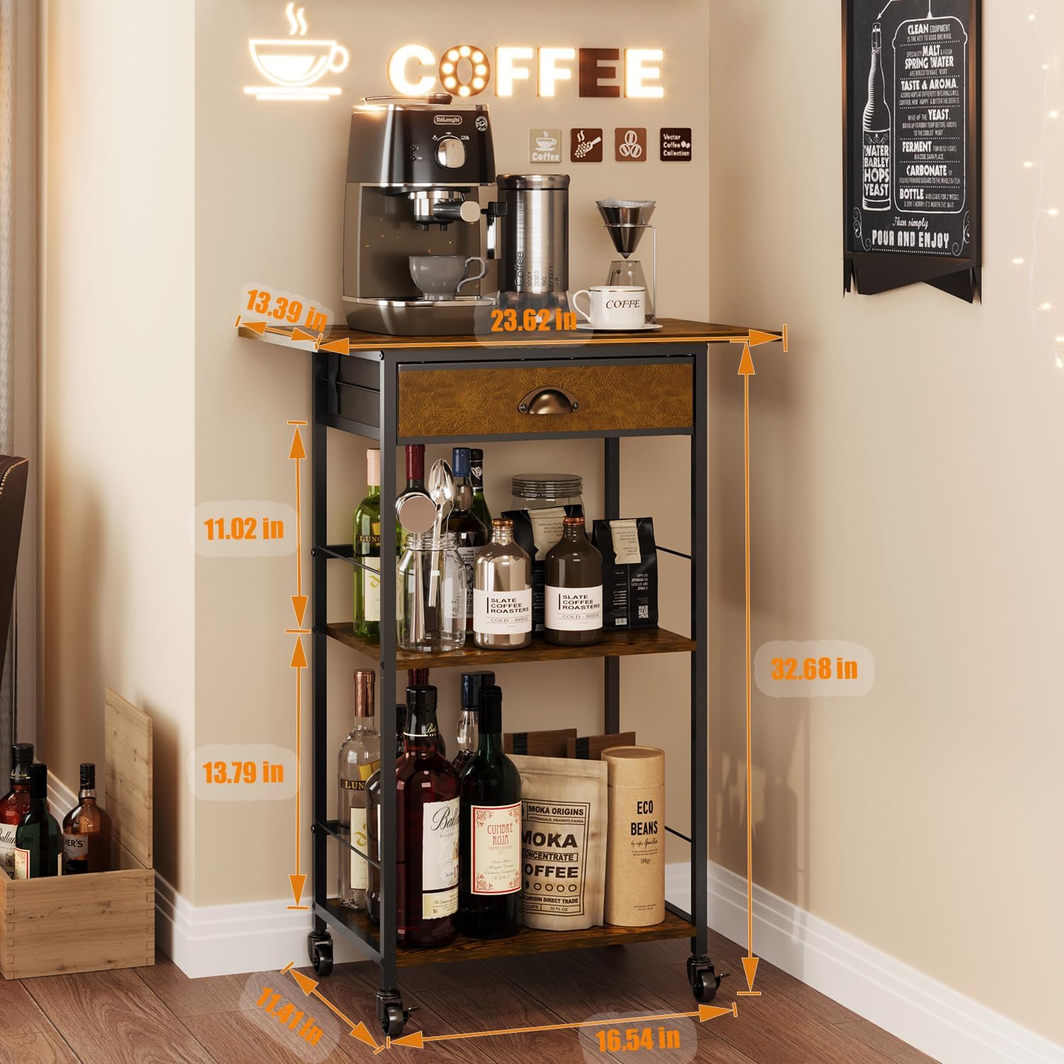 Our kitchen and entryway have both⁣ benefited immensely from this multi-functional cart. Its 3-tier design offers generous shelving ​that perfectly‌ accommodates our coffee ‌maker, grinder, and various kitchen gadgets, keeping everything within effortless reach. The⁤ extended worktop provides valuable ‌counter space without overwhelming‌ our limited room,‌ while the compact footprint fits snugly‍ into tight corners, making⁢ it an‌ excellent ⁤solution for small spaces. We especially appreciate the⁢ storage drawer, which helps us neatly organize ⁣small essentials ‍like coffee filters ‍and spoons, eliminating clutter that used to overwhelm our countertops.