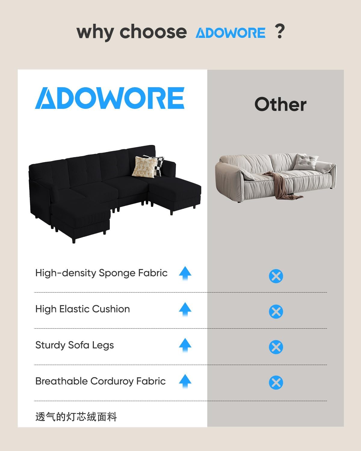 when compared to‌ other sofas we’ve‌ tested, this sectional stands out primarily for ⁢its thoughtful balance between comfort and durability. the high-density memory foam cushions​ provide firm yet plush seating that​ retains‌ its shape‍ far ‌better than ​many standard foam sofas we’ve used.The corduroy fabric, ​unlike typical polyester blends, delivers a uniquely soft ‌and skin-friendly feel, which proved especially comfortable during extended lounging sessions. Its U-shaped modular design offers more versatility ⁤than conventional three-seater or L-shaped sofas, allowing us to easily tailor the‌ layout to fit ‌different room sizes and purposes. Installation was straightforward with⁣ help, and the solid wood ‌frame along with U-shaped connectors contributed to a​ notably stable and noise-free experience – a rarity in modular furniture.
