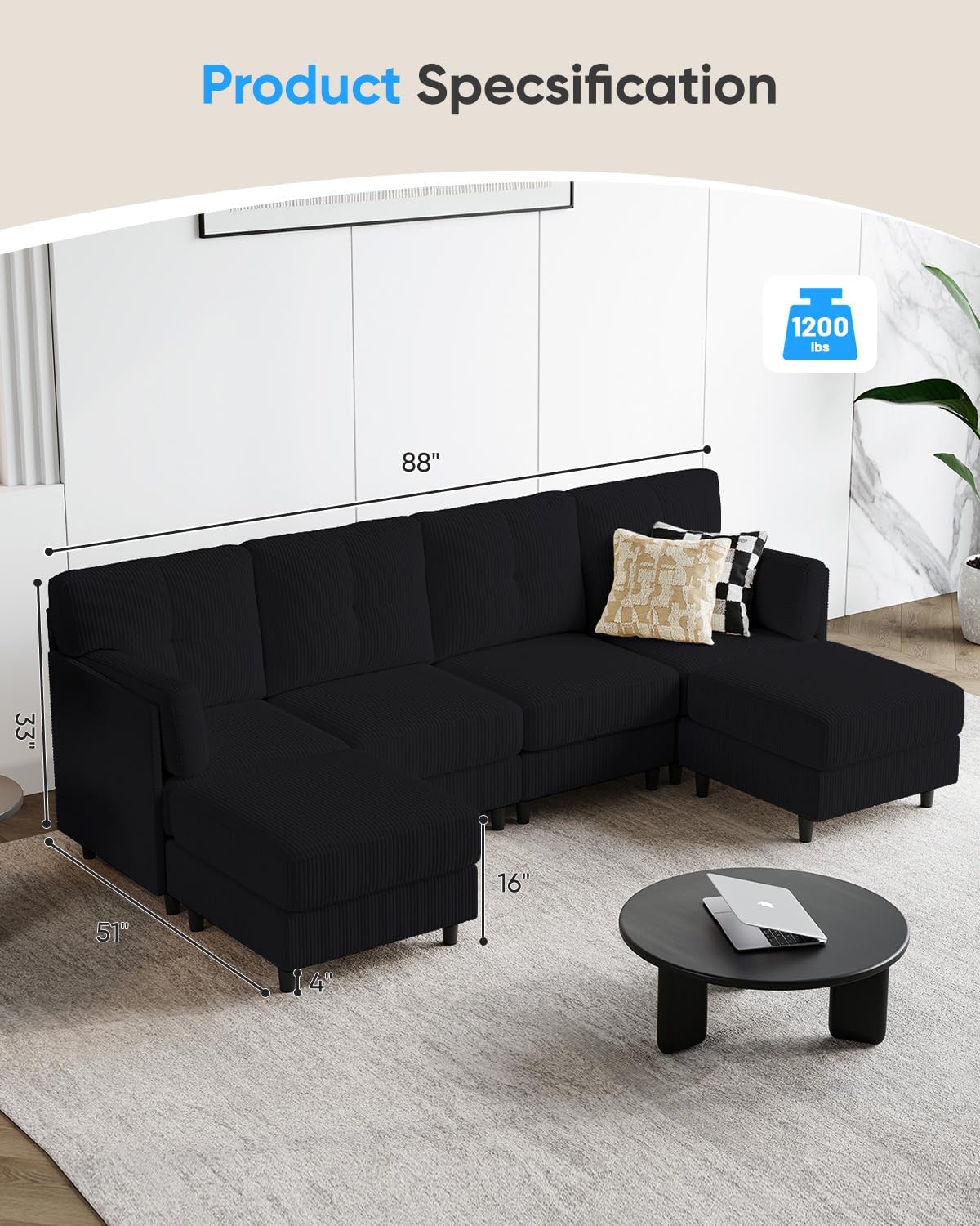 the 88-inch Sectional Sofa with its‍ high-density memory​ foam cushions and soft corduroy fabric offers both comfort and style in a modular, versatile design. While its ample weight⁤ means installation is best done with help, the clear instructions and customizable configurations make it a ⁣strong contender for anyone looking to enhance their living room with a durable, cozy centerpiece.​ Whether⁣ you’re after plush seating for family ⁢movie nights or a‌ sleek, adaptable arrangement for hosting guests, this ‍U-shaped‍ sectional delivers a‍ reliable blend‍ of form and function.