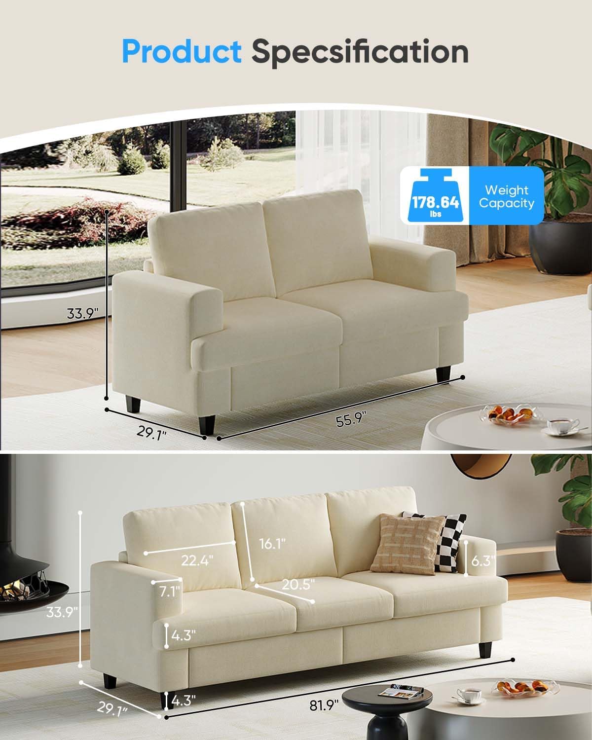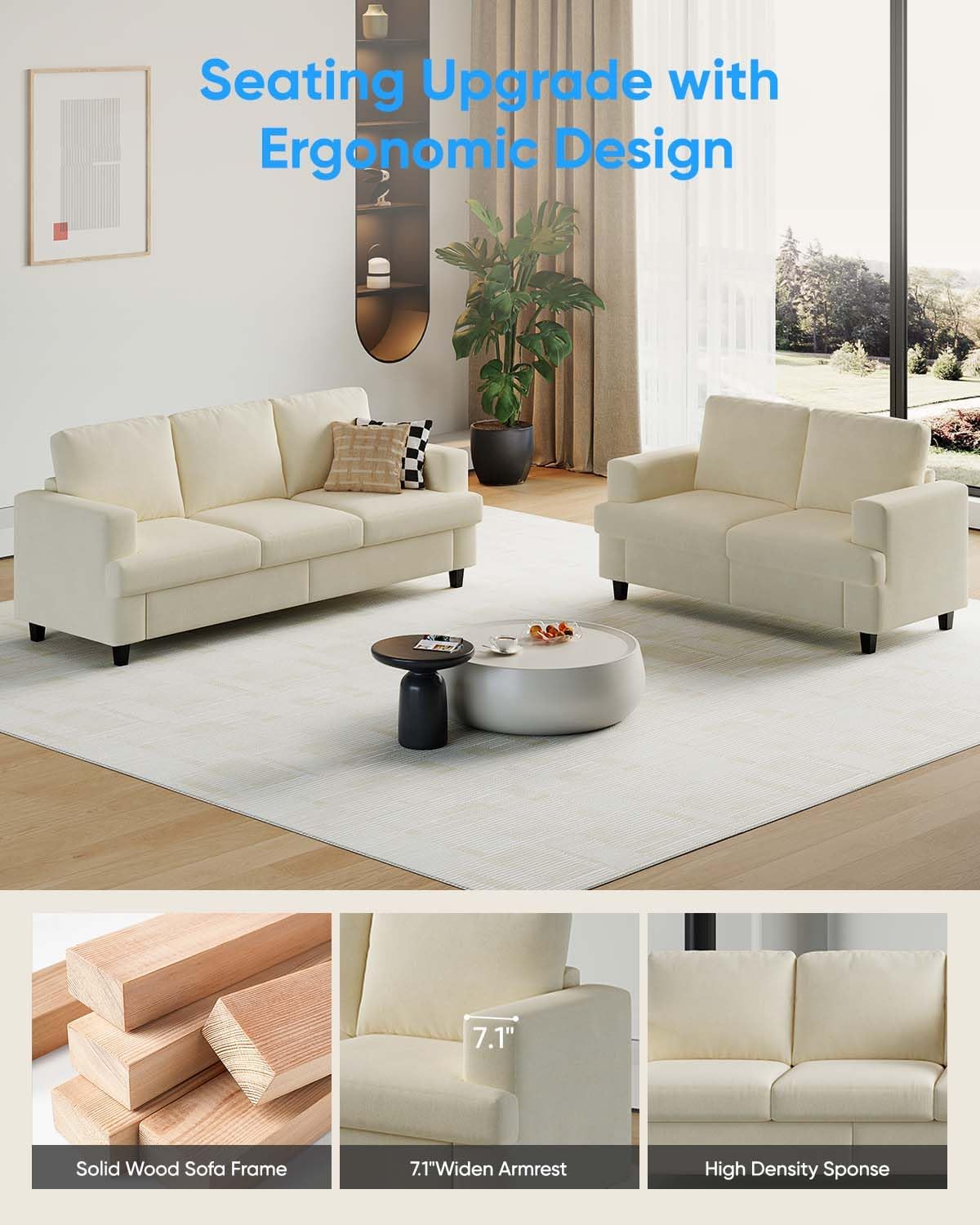 This sofa set is ideal⁤ for those⁢ who value both comfort⁤ and durability in their living space‍ furnishings.​ Thanks to its solid wood frame with ‌rivet reinforcements, it offers a sturdy foundation that promises long-lasting use, ‌making it perfect for⁢ families or anyone seeking furniture that can ‌withstand everyday wear and tear. The breathable chenille fabric enhances the seating experience, especially ⁤in warmer climates or during summer, as⁢ it regulates temperature and feels gentle on the skin. ​Its neutral beige⁣ tone ‍and minimalist style will easily complement a variety of interior designs,⁢ appealing to ⁣homeowners looking to create a​ cozy yet modern ambiance⁤ without overwhelming the room.