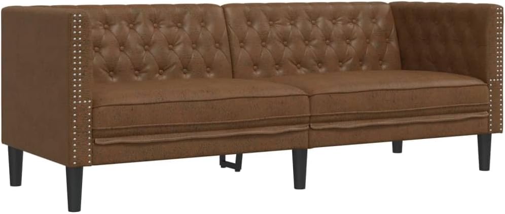 Our living space has been transformed by the rich, brown tone and classic Chesterfield design that effortlessly blend sophistication and modernity.The distinct rectangular silhouette paired with deep, plush cushioning invites us to linger longer, whether for relaxed family evenings or entertaining guests. This set comfortably seats five, with a generous seat depth that cradles us in comfort, making every moment feel both cozy and elegant. The matte finish on the polyester fabric adds subtle refinement while ensuring the sofa remains a striking centerpiece without overwhelming the room’s decor.
