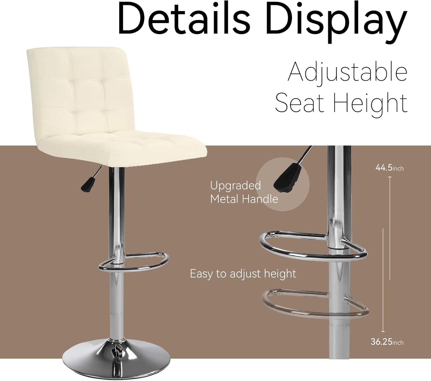 from the moment we unboxed these stools, their sleek, modern design instantly elevated the atmosphere of our space. The beige PU leather upholstery feels soft yet durable, complemented by the wrap-around footrest which adds a touch of sophistication and extra comfort. Assembly was surprisingly straightforward and took us less than 20 minutes-no complicated tools or countless screws. The adjustable height feature proved very practical, allowing us to effortlessly customize the stools for different counter heights ranging from 24″ to 32″. Plus, the smooth 360° swivel makes moving in and out seamless, which is a great advantage when entertaining guests or multitasking in the kitchen.