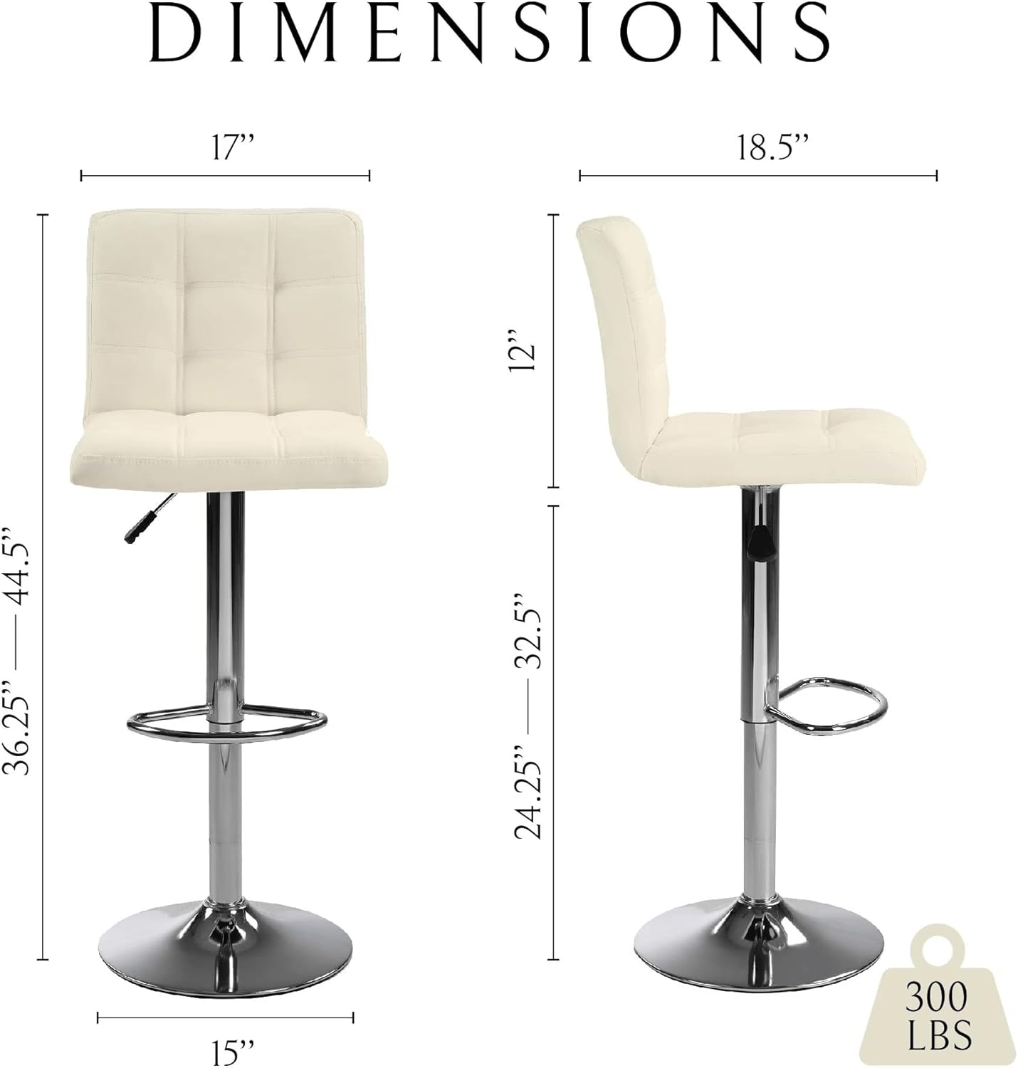 Comfort is where these stools truly shine.the thick, high-resilience foam cushion supports extended sitting without sacrificing coziness, and the sturdy metal frame provides confidence with its 300 lb weight capacity. Maintenance is a breeze because the PU leather is water- and stain-resistant, wiping clean with minimal effort. Whether used for a casual breakfast nook or a stylish home bar, these stools blend effortlessly with any décor while offering both functionality and elegance.