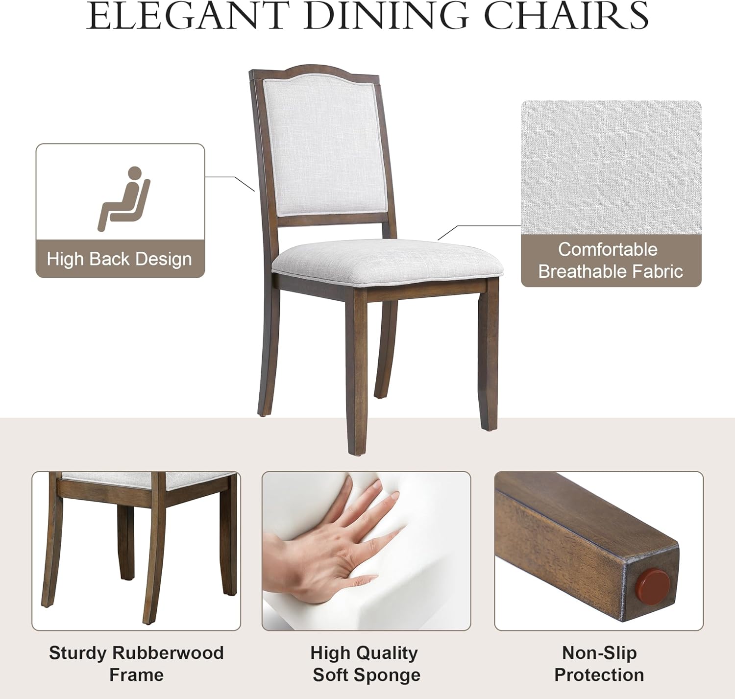 | Comfortable Seating: Upholstered chairs with high-density foam and ergonomic curved backrests provide comfort for extended meals and conversations. | Neutral Color Palette: The beige linen and brown wood tones blend easily but might feel a little plain for those seeking bold colors or striking contrasts. |