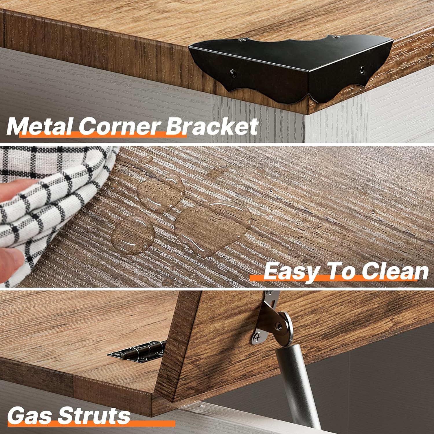 | Lift Top Mechanism | Easy access to storage without sacrificing surface space |