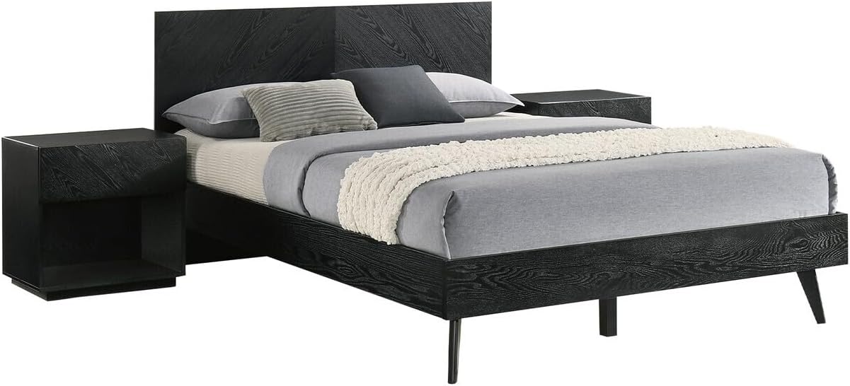 Our first impression centers on the impeccable attention to detail found throughout the entire set, notably in the Queen platform bed.Featuring a sleek black diagonal grain finish paired with elegantly tapered legs, the bed exudes a modern aesthetic without sacrificing warmth or character. The blend of solid wood and engineered materials ensures a balance of durability and refined style that can complement a variety of bedroom decor themes-from contemporary to transitional. The platform design eliminates the need for a box spring, offering a clean, minimalist silhouette while providing sturdy support.
