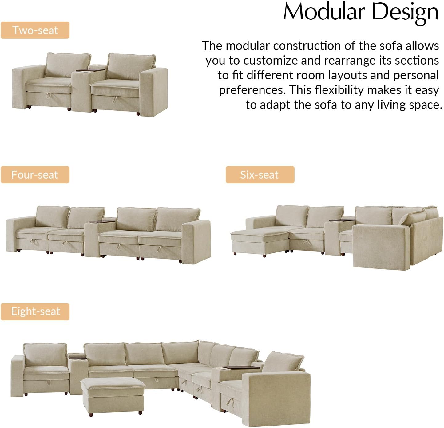 | Modular Seating Options | Customizable from 2 to 8 seats |