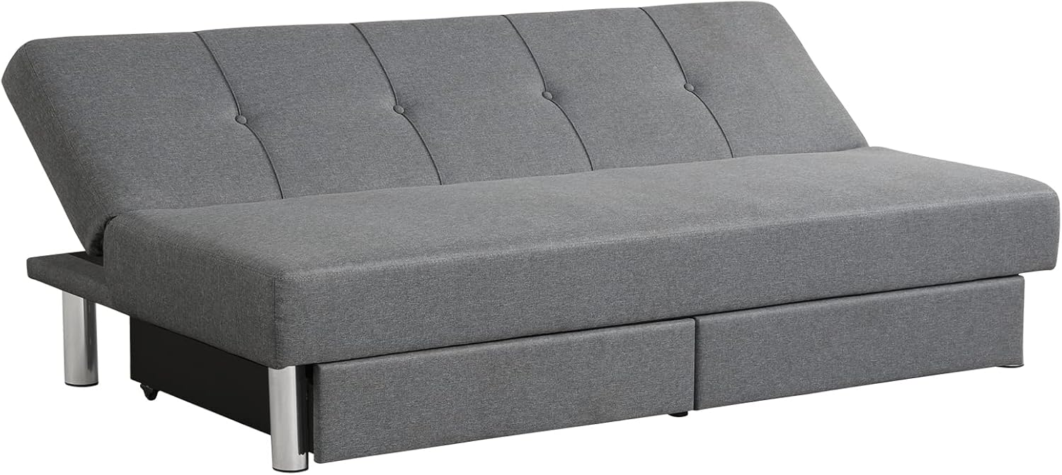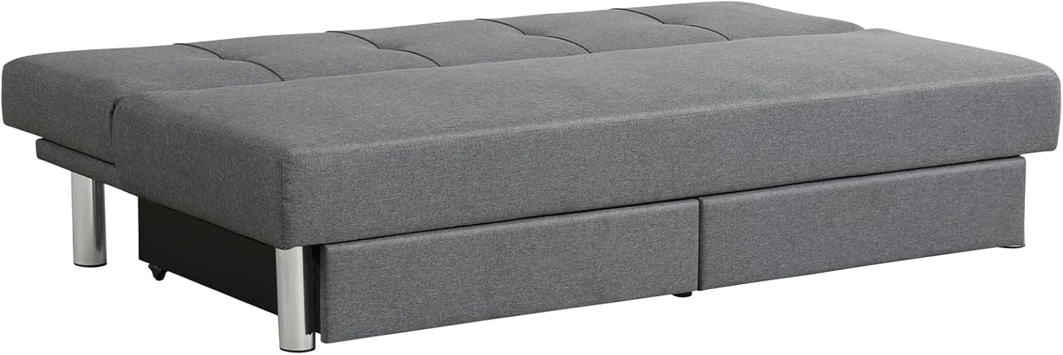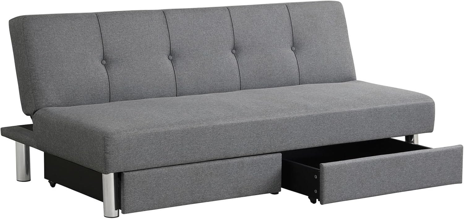 For those of us balancing style, comfort, and space efficiency, these built-in drawers offer a practical storage solution that harmonizes wonderfully with the convertible functionality of this versatile futon sofa. Discover this storage-savvy sofa sleeper today and transform yoru living space effortlessly!