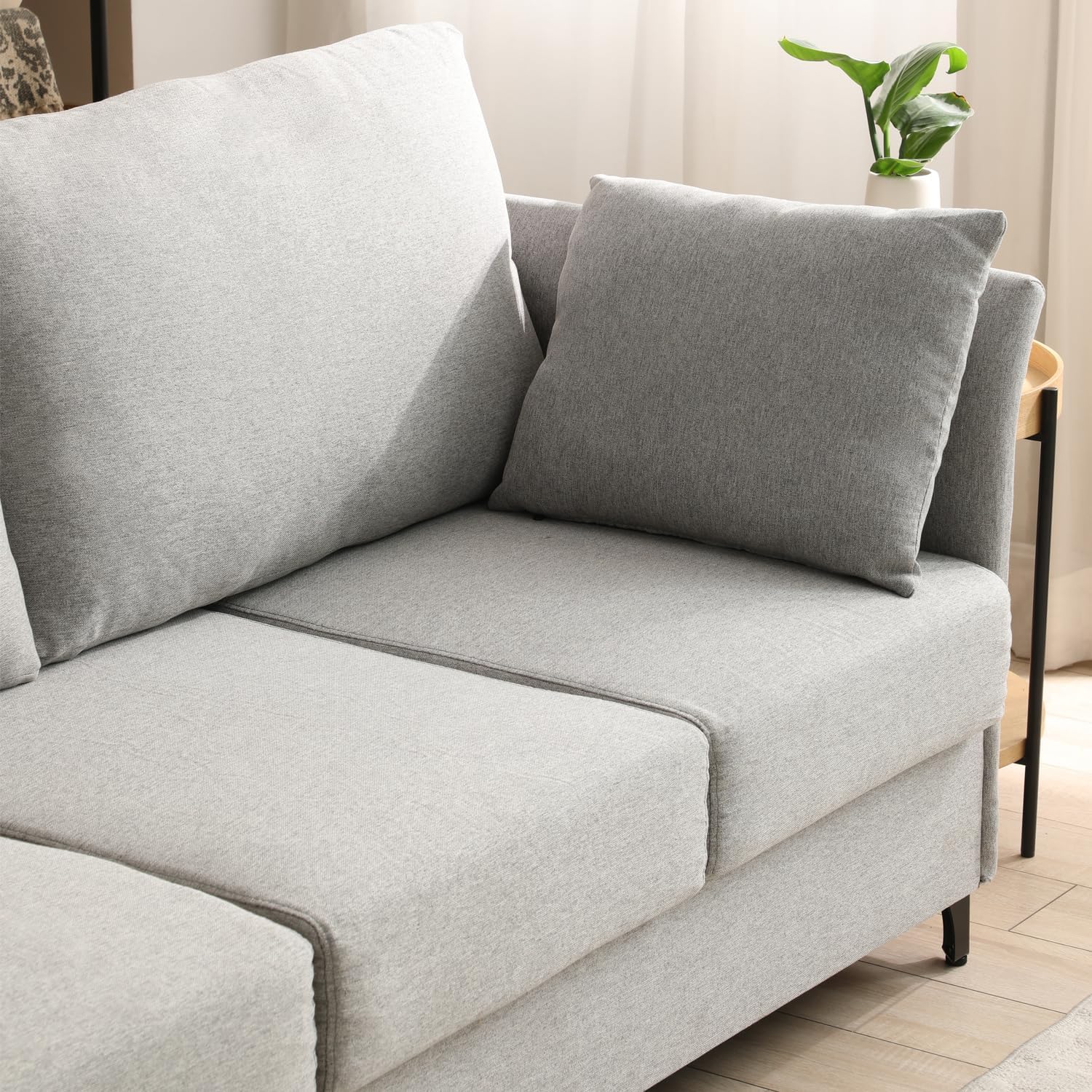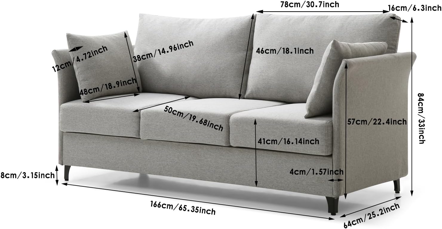 From the moment we set up this sofa, its sturdy iron frame impressed us with how solid and durable it felt-supporting up to 500 lbs without any worries. The deep 20-inch seat instantly invited us to sink in and unwind,while the ergonomically tilted backrest at 105 degrees helped ease tension in our backs and necks after long hours sitting.The cushions, filled with soft doll cotton and high-resilience sponge, provided a plush yet supportive feel that truly elevated our lounging experience. Plus, the breathable cotton-linen fabric not only enhances comfort but stands up well against regular wear and tear, all while providing an elegant yet unobtrusive gray tone that blends seamlessly with our living room decor.