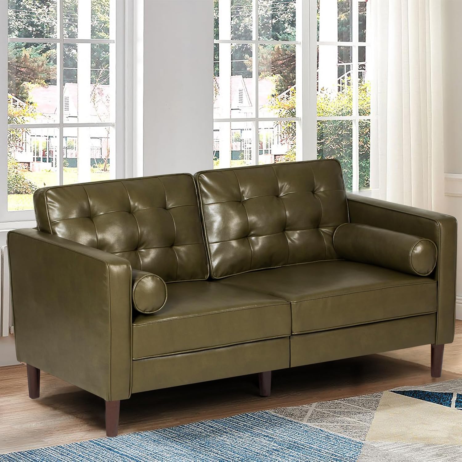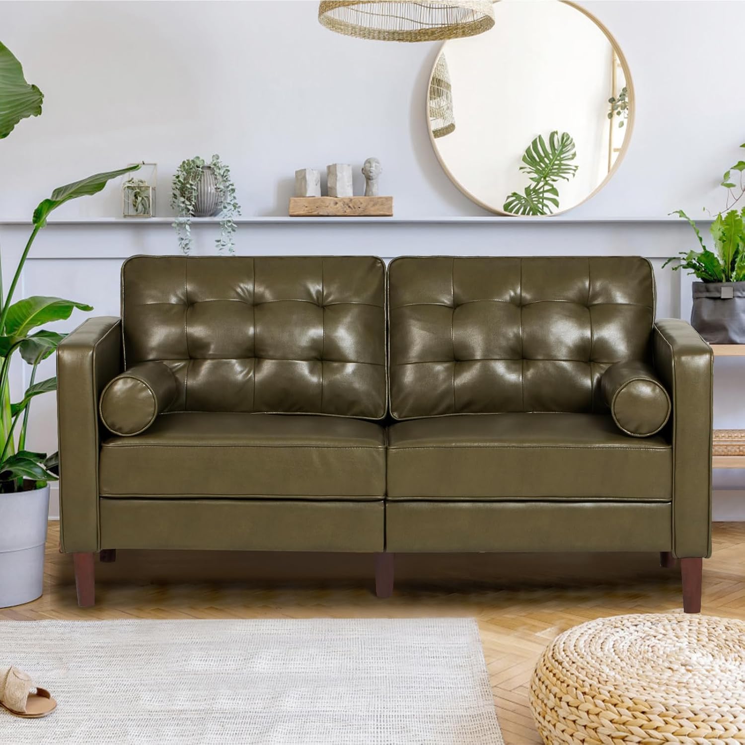 Our first impressions emphasize the sofa’s elegant mid-century modern ‌design highlighted⁢ by a sophisticated olive green faux leather upholstery. The tufted backrest adds a stylish visual texture while elevating the overall aesthetic, making it a standout piece for living rooms, bedrooms, or even office ‍spaces. The deeper seat space-measuring​ 24 inches⁤ in depth-invites full⁤ relaxation, providing ample room without overwhelming cozier settings. Paired with two well-stuffed cotton-filled⁤ bolster pillows, the⁤ loveseat blends functionality with refined comfort, ensuring that both casual lounging and⁢ decorative appeal are ⁣well addressed.